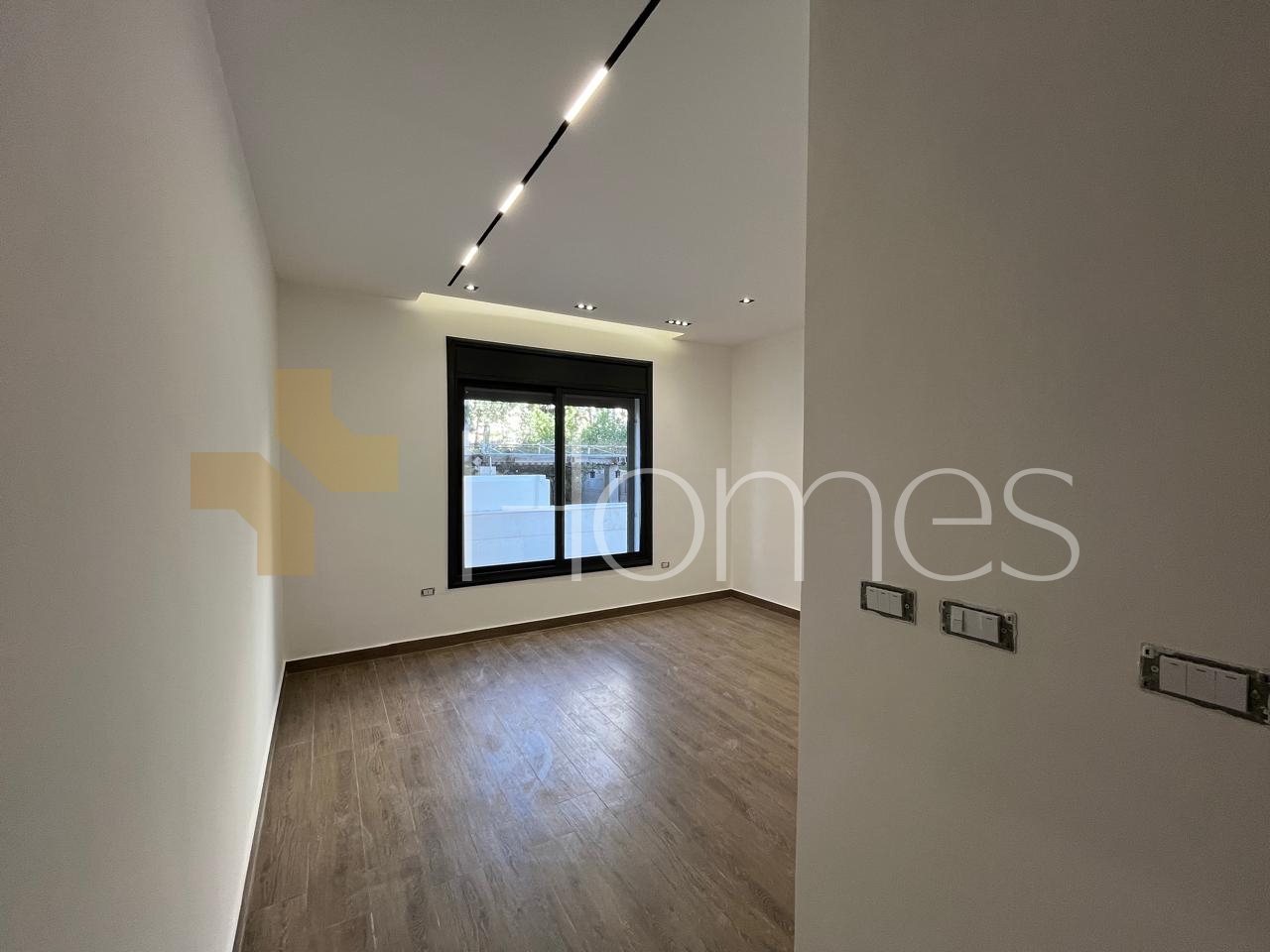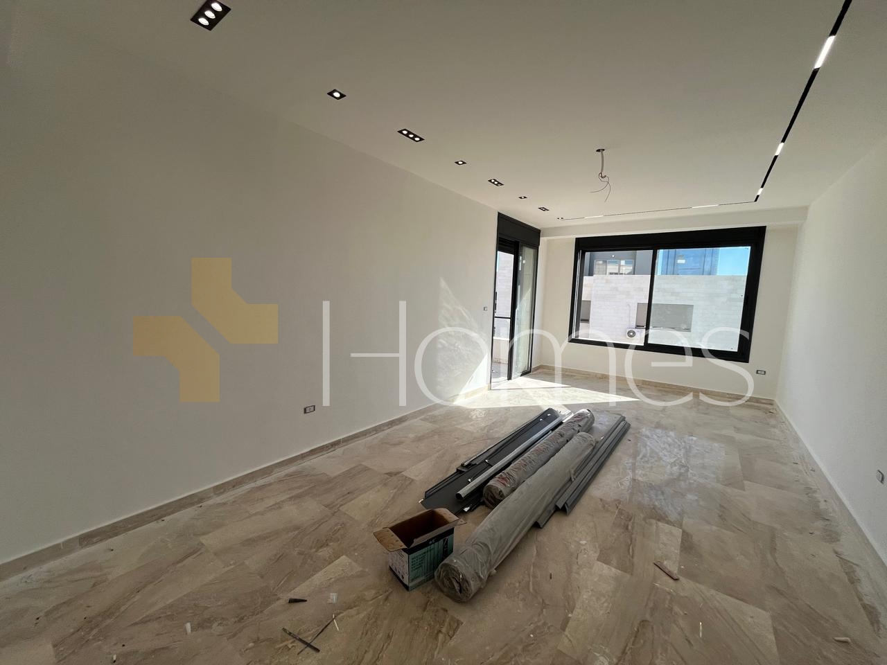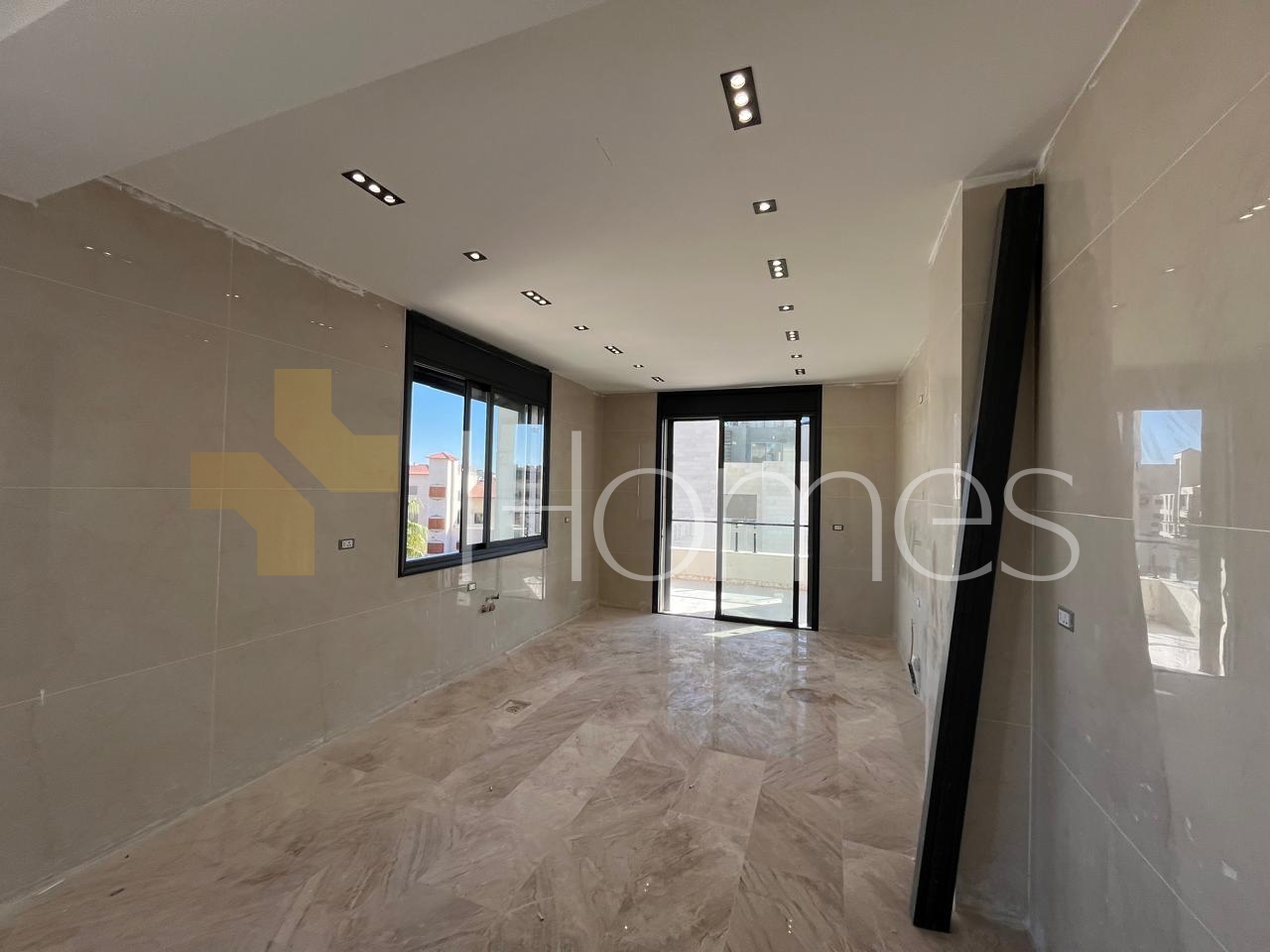 Porcelain floors - Central air conditioning - Gas underfloor heating - Gypsum, wood, and stone decorations - Suspended bathrooms - Electric window shutters - Shower box - Fireplace - Elevator - Security doors - Hidden lighting - Double classes - Super deluxe finishes