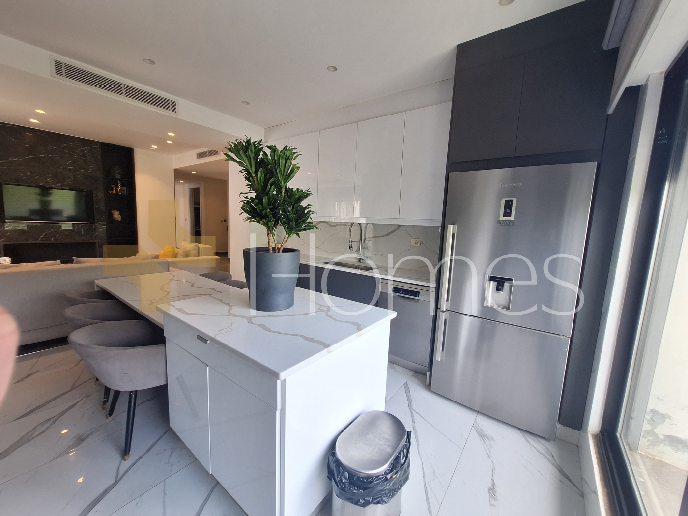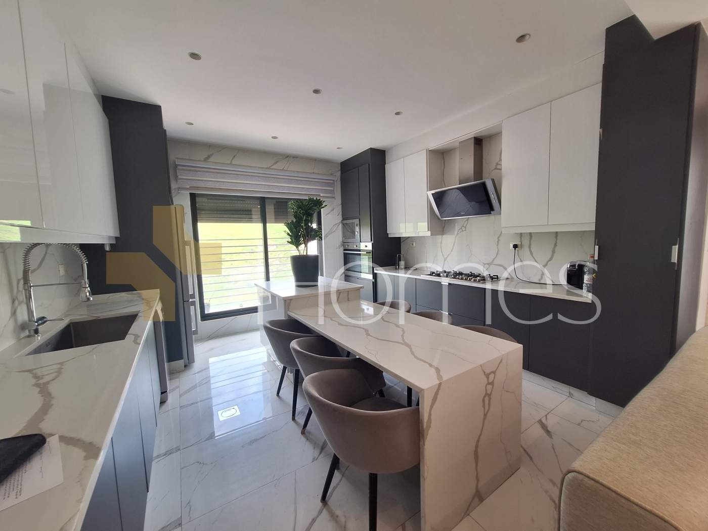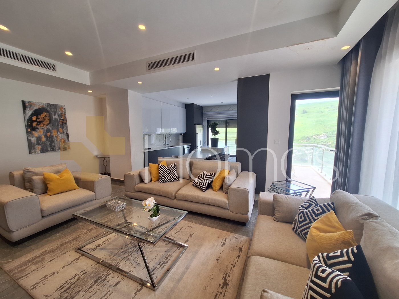 Porcelain tile flooring - Central gas air conditioning - Gas heating - Kitchen - Gypsum board decorations - Wall-hung toilets - Electric window shutters - Shower enclosure - Garage - Elevator - Security doors - Surveillance cameras - Concealed lighting - Double classes - Super deluxe finishing