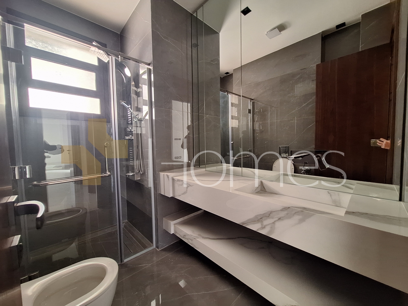 Porcelain floors - Central air conditioning + individual units - Underfloor gas heating - Gypsum and wood decorations - Wall-hung toilets - Electric window shutters - Shower enclosure - Garage - Elevator - Security doors - Surveillance cameras - Concealed lighting - Double classes - Super deluxe finishing