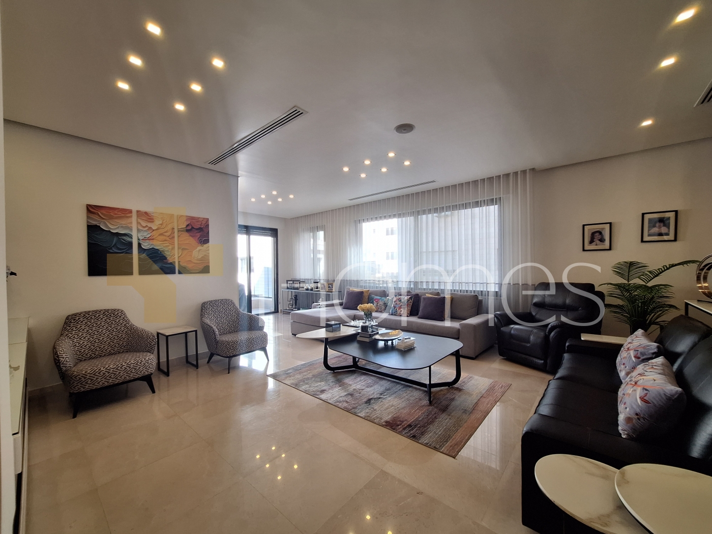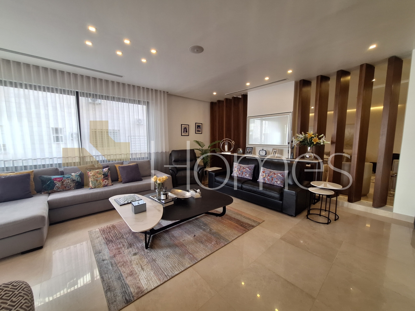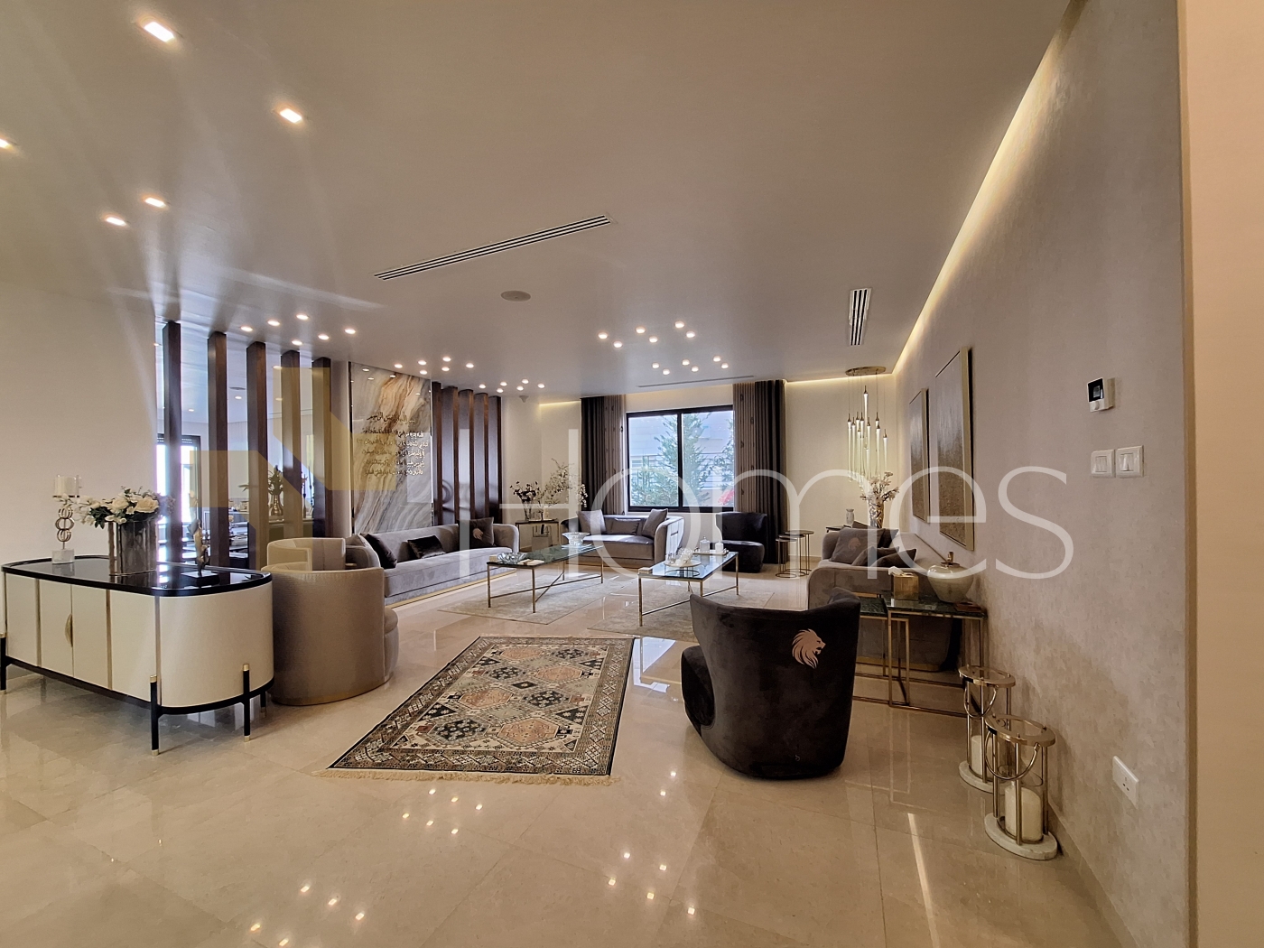Flat apartment with a garden for sale in one of Amman's most desirable neighborhoods - Dabouq - with a building area of 340m plus a 25m outdoor terrace