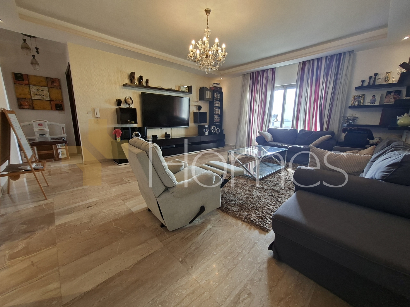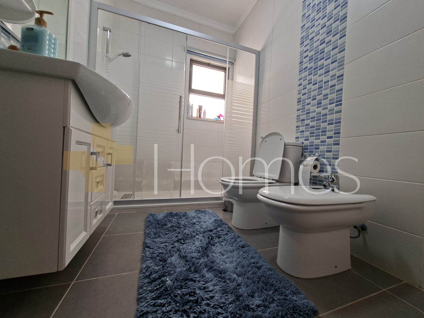 kitchen (Jawaico) - marble floors - air conditioning units - gas underfloor heating - gypsum board decorations - built-in wardrobes - double classes - security doors - fireplace - security cameras - wall hung toilets - electric window shutters - shower enclosure - elevator - recessed lighting - super deluxe finishing