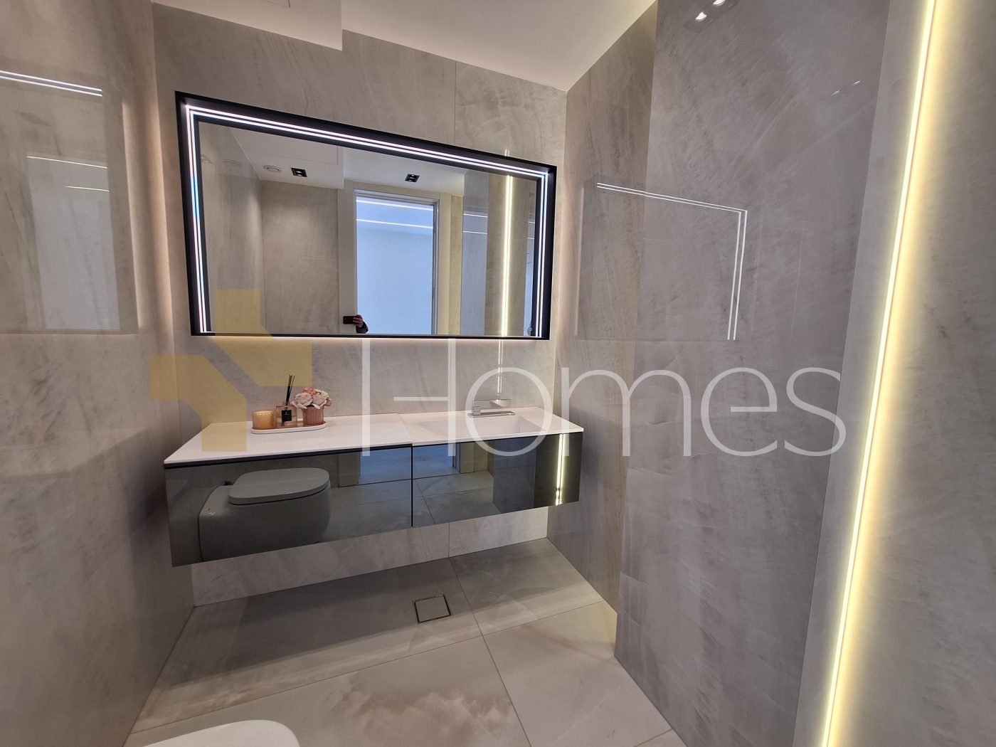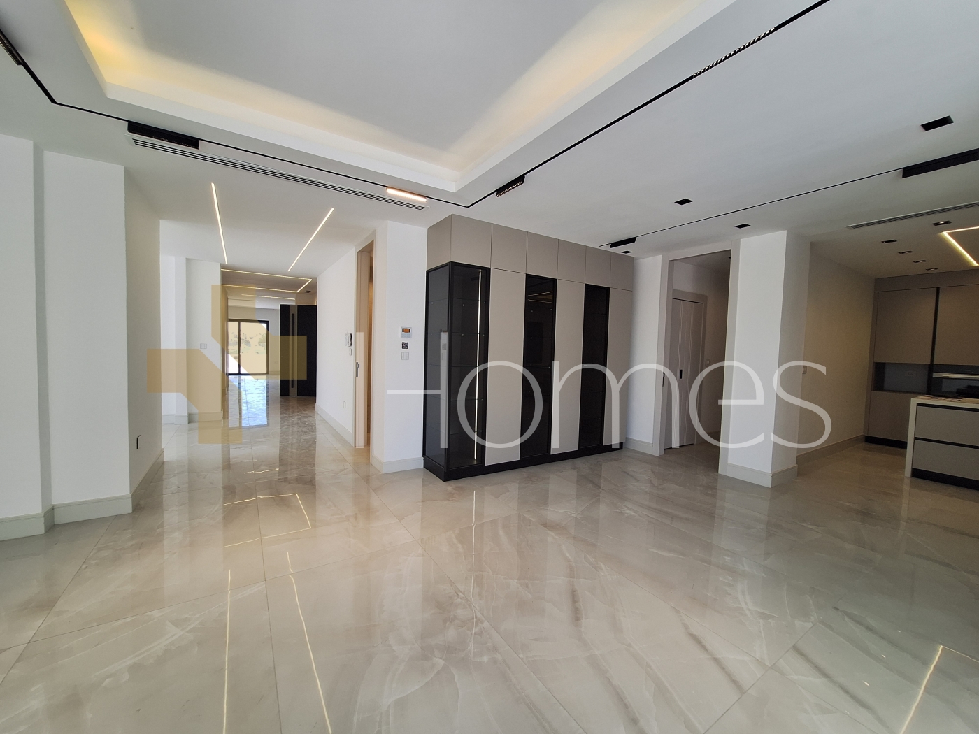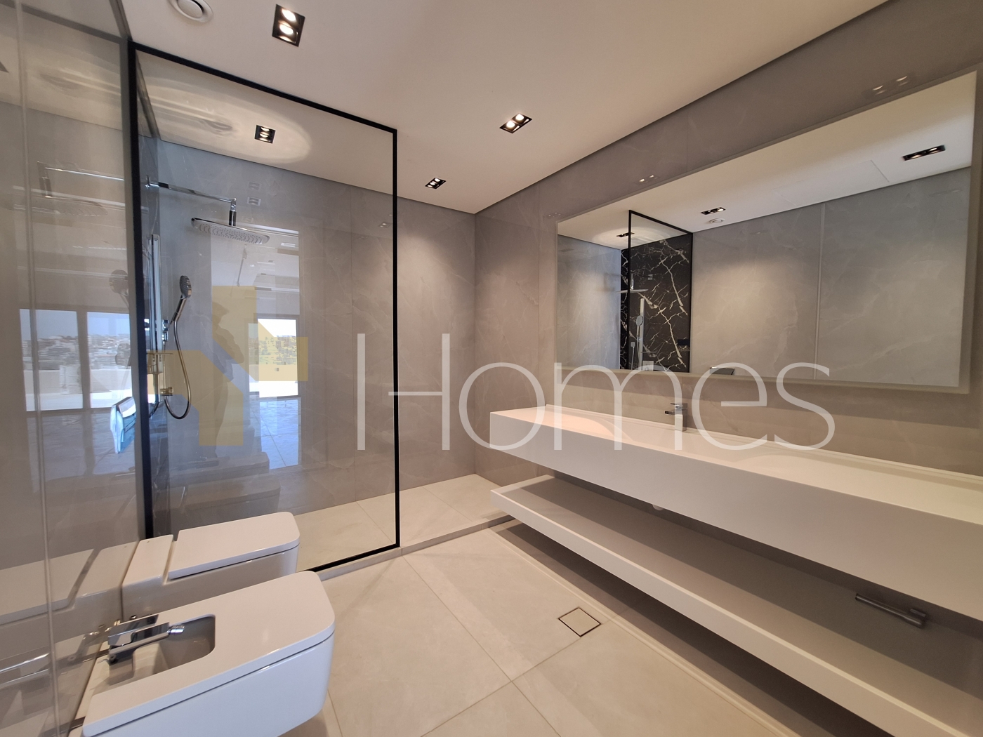 Porcelain floors - central air conditioning - gas underfloor heating - kitchen - gypsum, wood, and stone decorations - wall-hung toilets - shower enclosures - electric window shutters - security doors - surveillance cameras - fireplace - elevator - recessed lighting - double classes - deluxe finishing