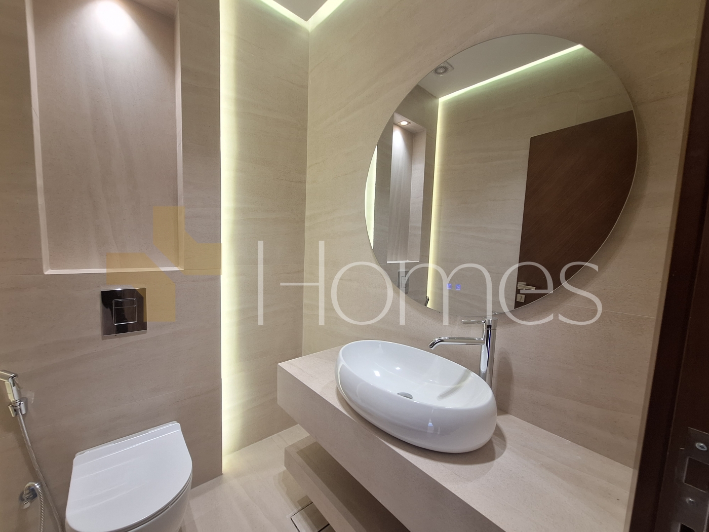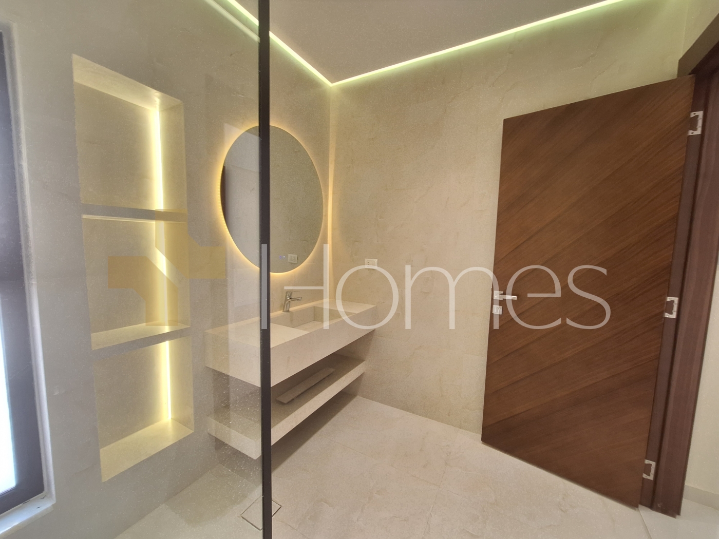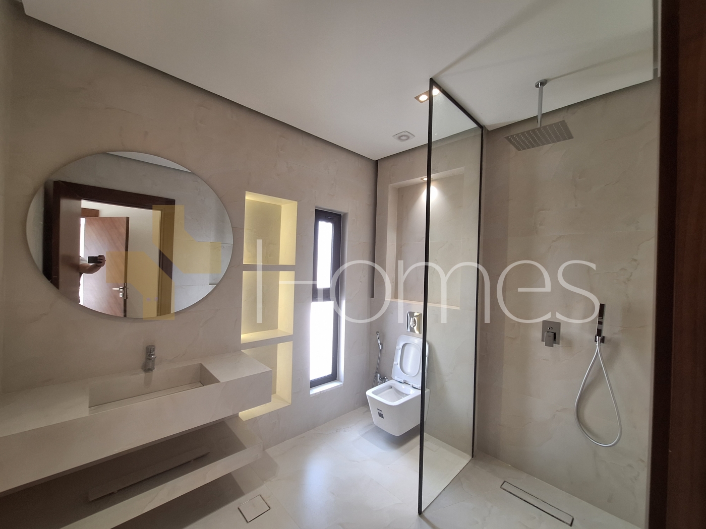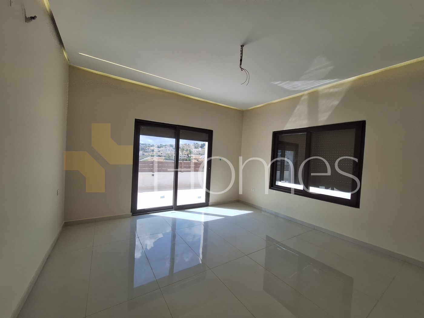 Porcelain floors - Air conditioning - Gas heating - Gypsum decorations - Suspended bathrooms - Electric window shutters - Shower boxes - Elevator - Security doors - Hidden lighting - Double classes .