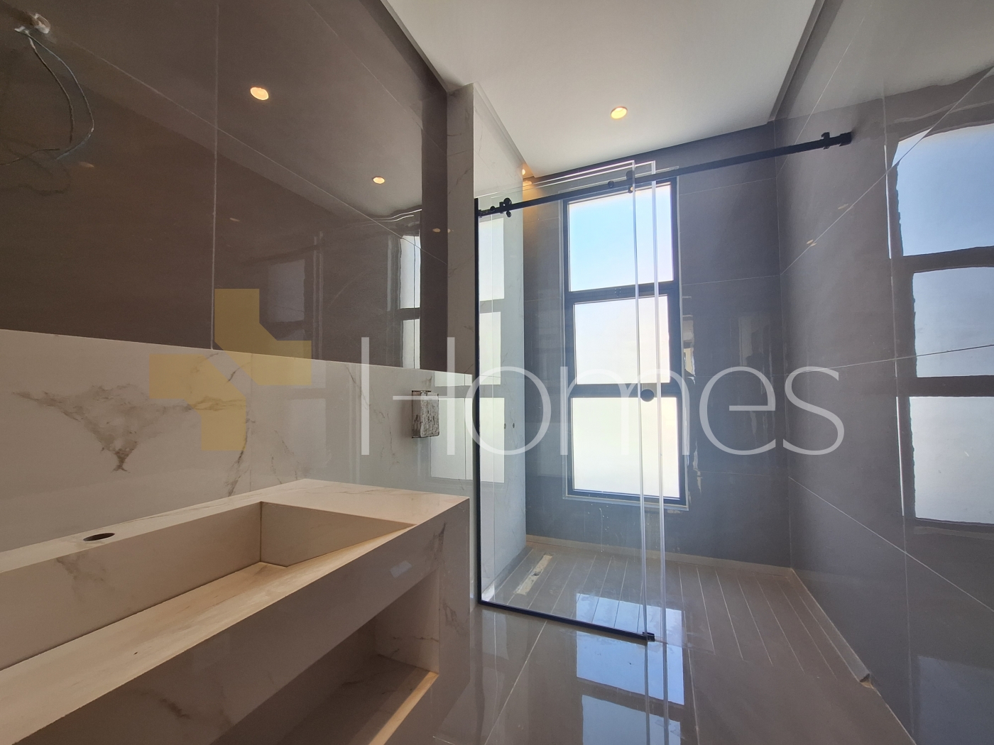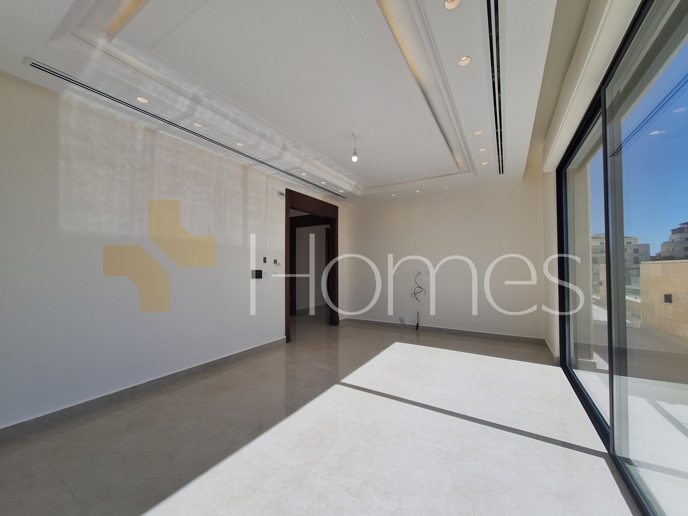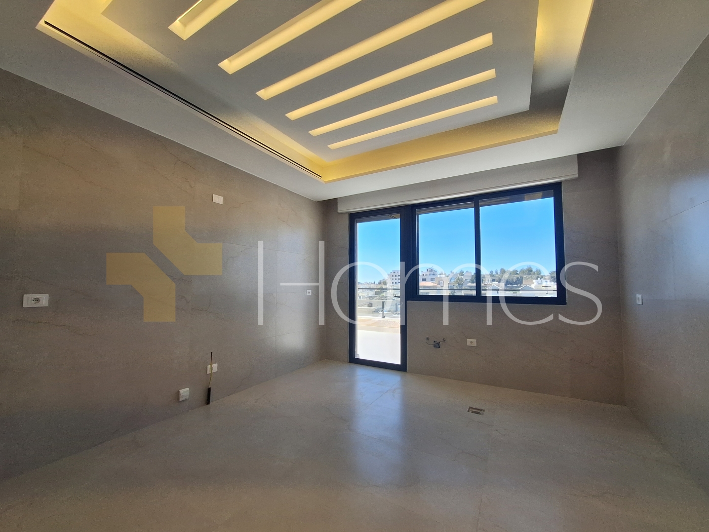 Porcelain floors - Central air conditioning - Gas underfloor heating - Gypsum decorations - Suspended bathrooms - Electric window shutters - Shower boxes - Elevator - Security doors - Hidden lighting - Double classes