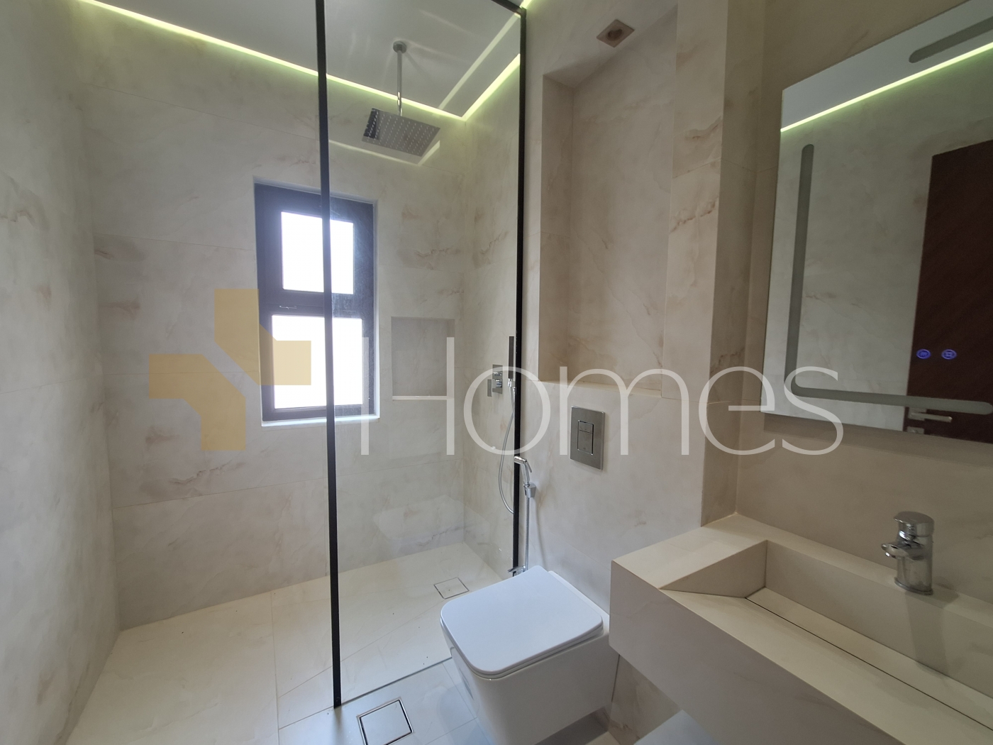 Porcelain floors - Air conditioning - Gas heating - Gypsum decorations - Suspended bathrooms - Electric window shutters - Shower boxes - Elevator - Security doors - Hidden lighting - Double classes .