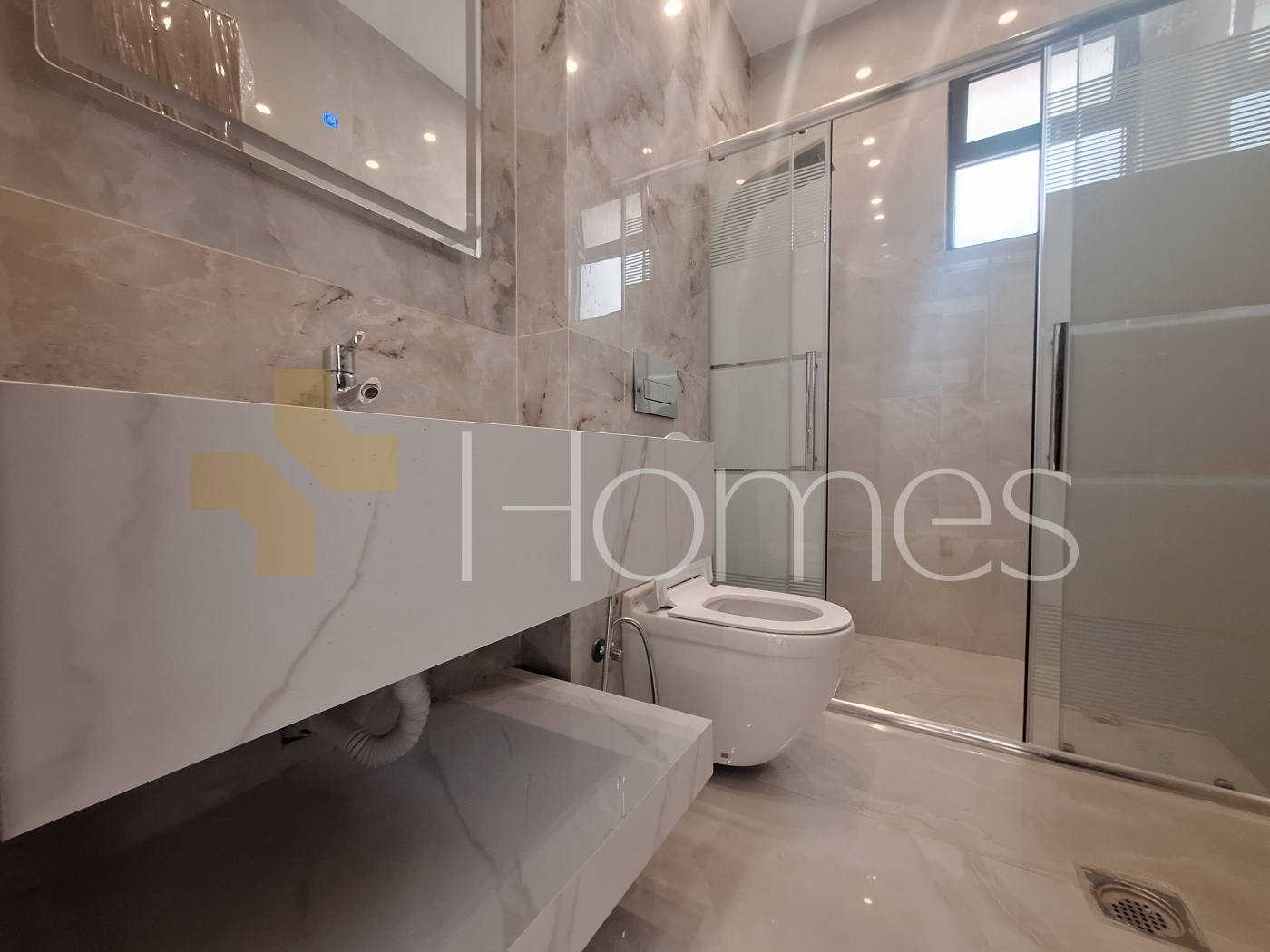 Porcelain floors - air conditioning units - gas heating - gypsum and wood decorations - wall-hung toilets - electric window shutters - shower enclosure - elevator - recessed lighting - double classes - super deluxe finishing