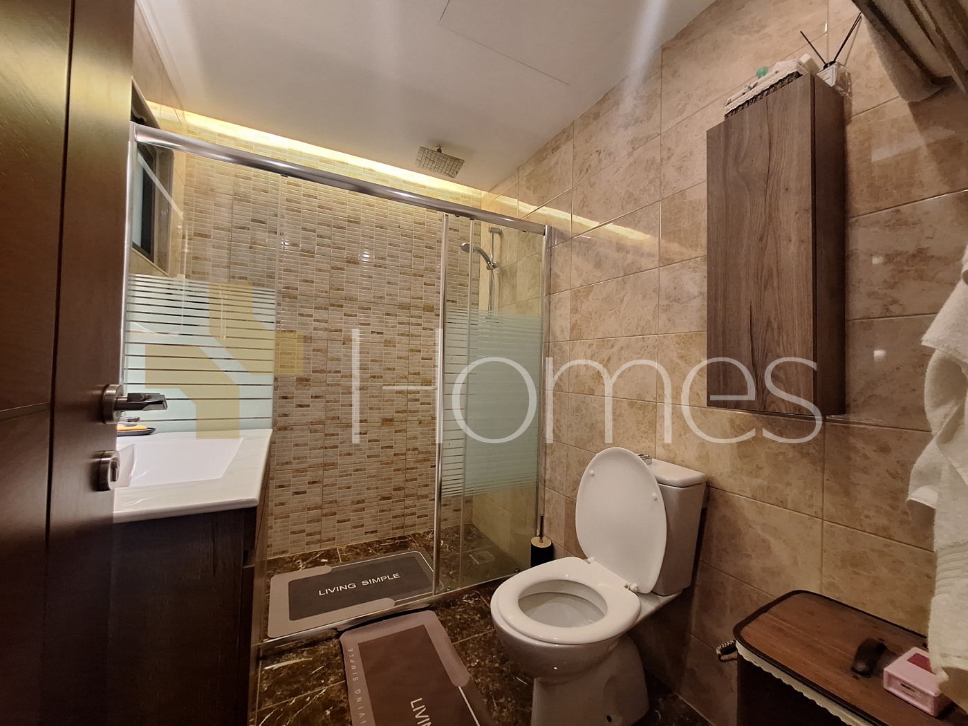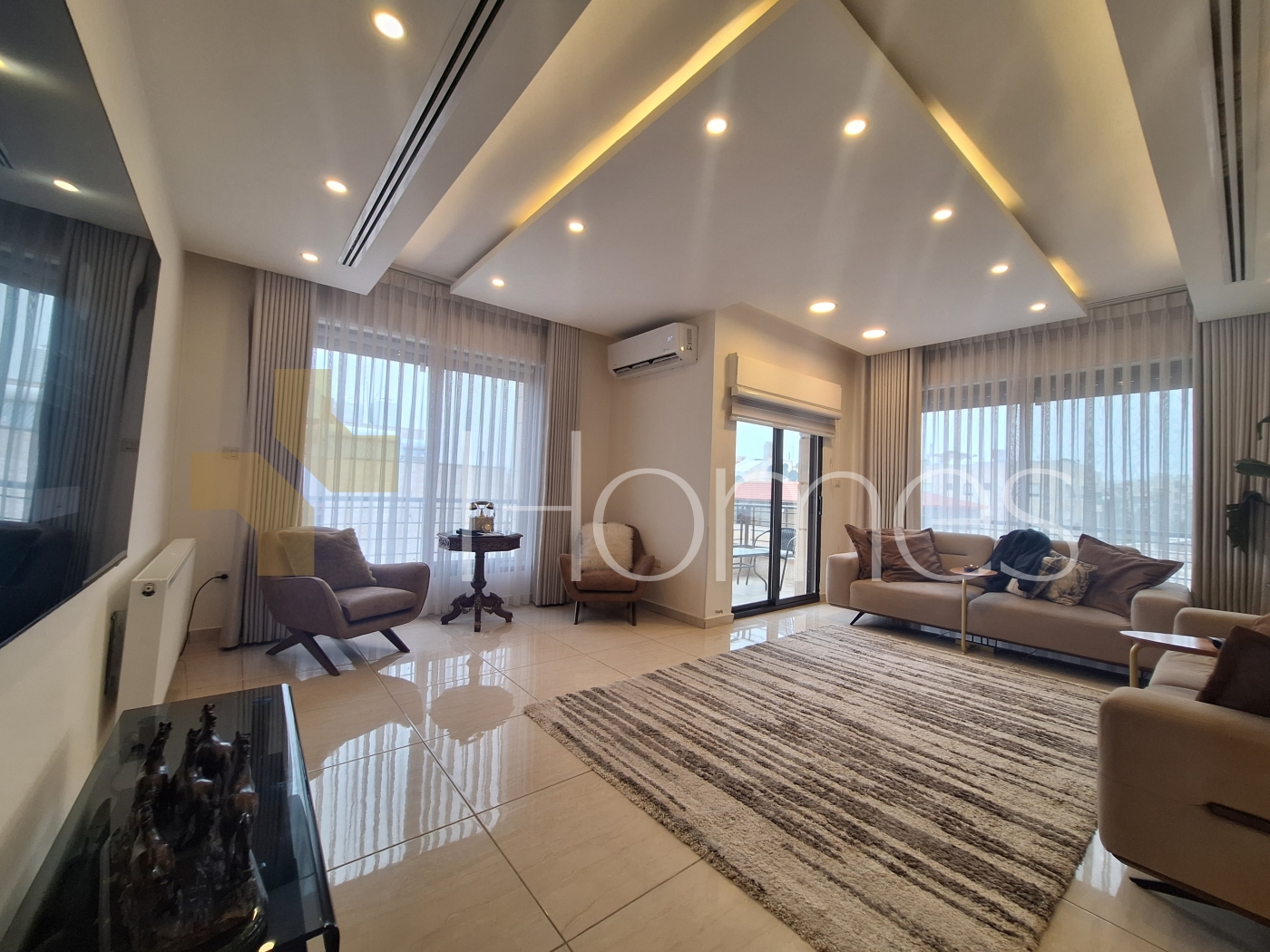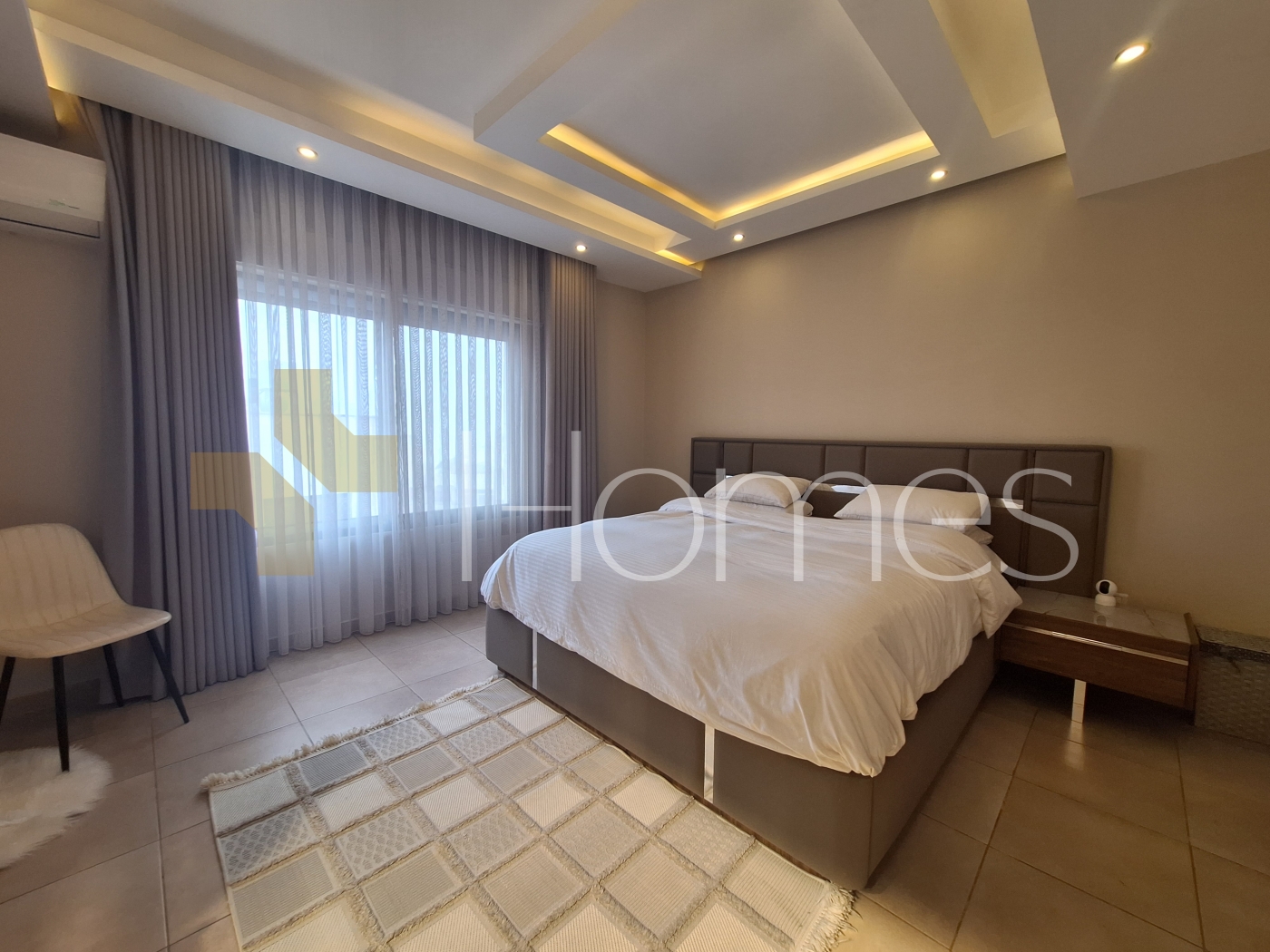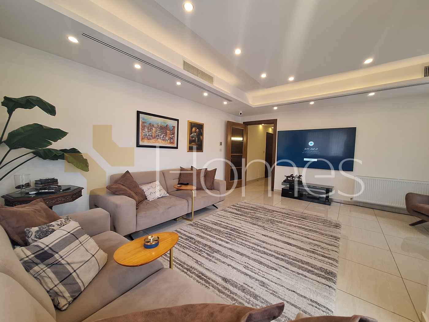 Porcelain tile floors - central air conditioning - heating - kitchen - built-in wardrobes - security doors - surveillance cameras - gypsum and wood decorations - wall-hung toilets - electric window shutters - shower enclosure - elevator - recessed lighting - double classes - super deluxe finishing
