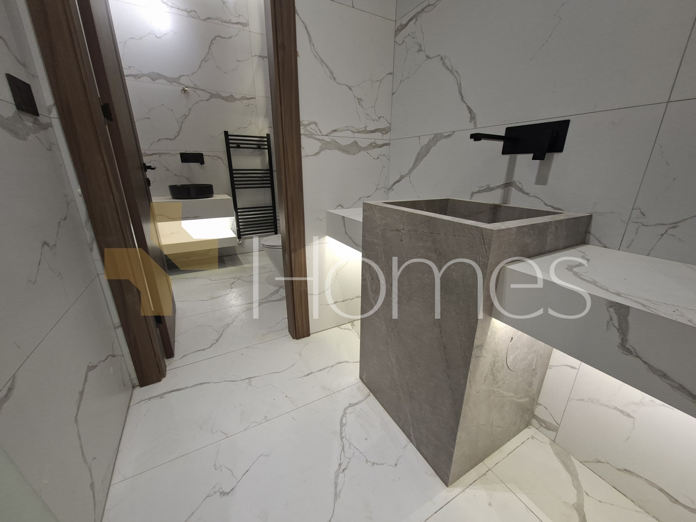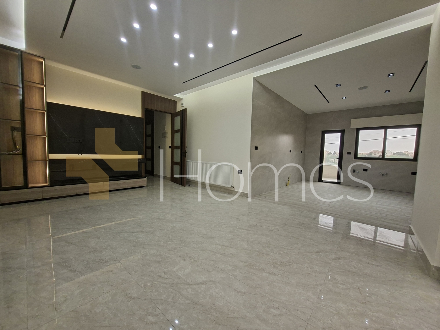 Porcelain floor - Units air conditioning - gas heating - built-in wardrobes - gypsum decorations - wall-hung bathrooms - electric window shatters - shower box - fireplace - water well - elevator - security doors - Security cameras - hidden lighting - double glass - super deluxe finishing
