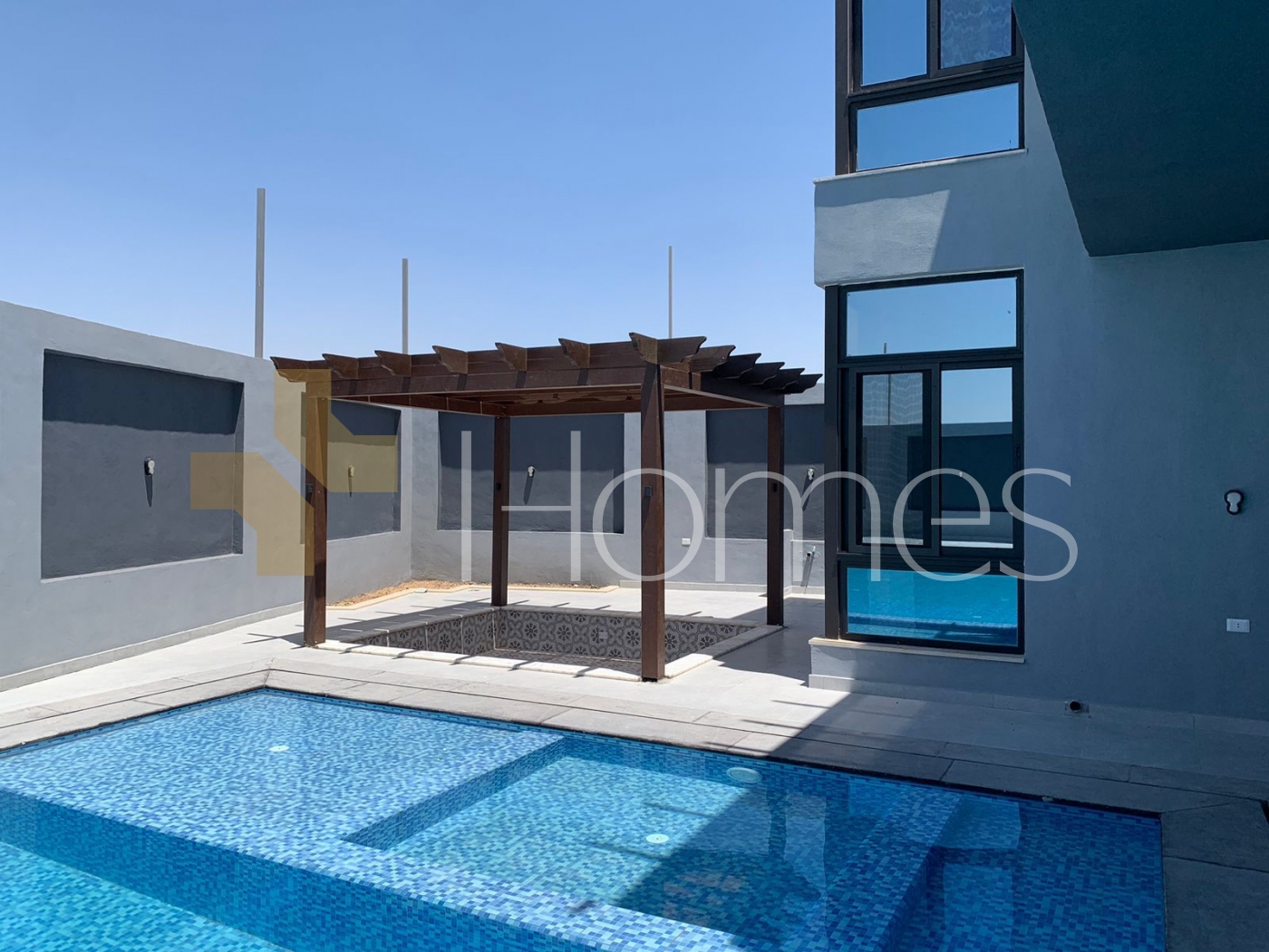 Chalet with a swimming pool for sale in Al-Ghor, with a land area of 475m and a building area of 260m.
