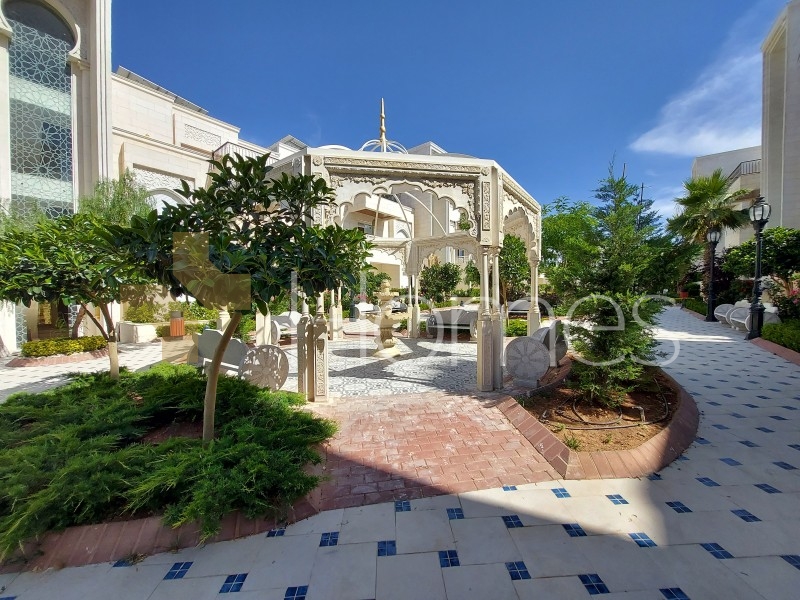 Shared swimming pool - outdoor spaces with a wide fountain - cinema halls - gym - wedding hall - lobby - security services 24/7 - marble + ceramic floors - central air conditioning - underfloor heating on gas - double glass - security cameras - safety doors - gas heating Under tiles - Super Deluxe finishes - Gypsum decorations - Stove - Suspended bathrooms - Electric window - Shower box - Water well - Elevator - Spotlight - LED lighting - Hidden lighting - Did not live - Located in the area of villas