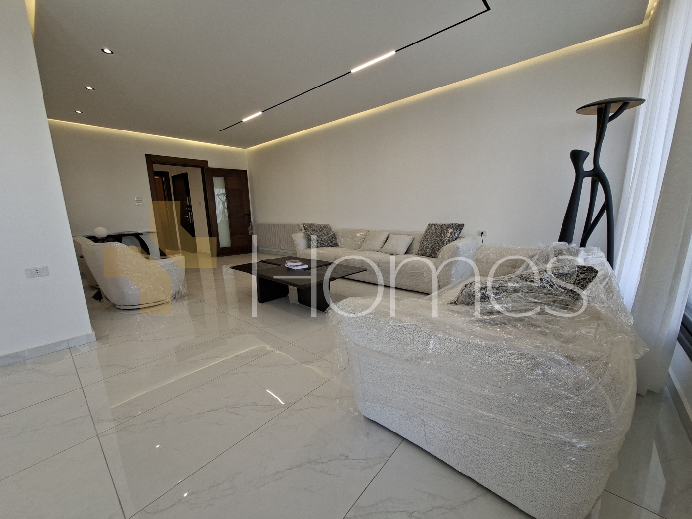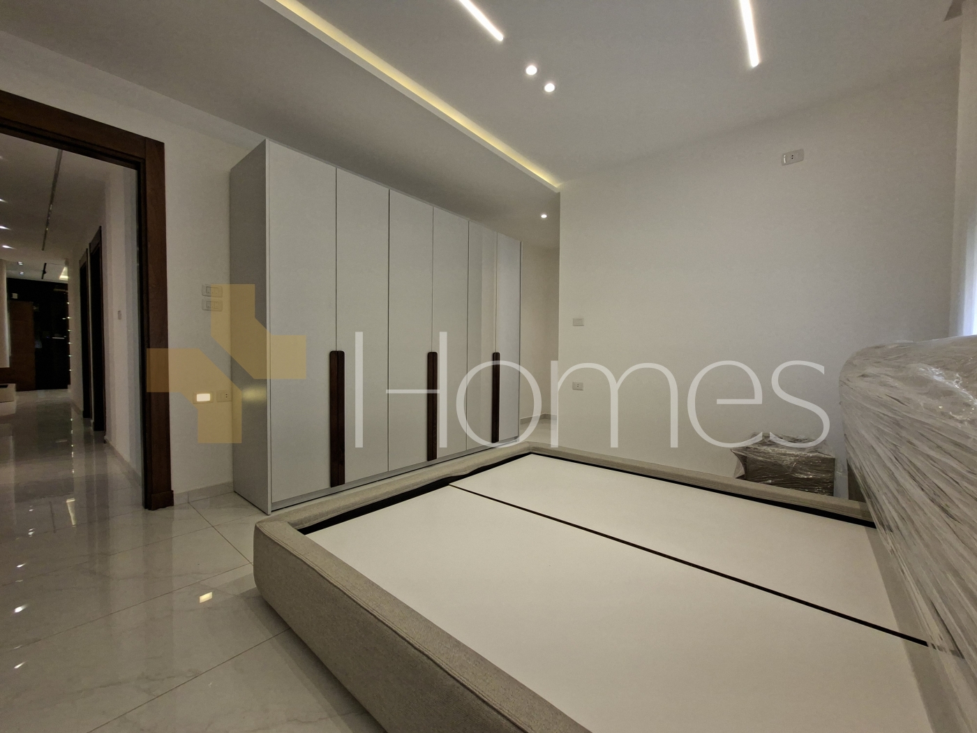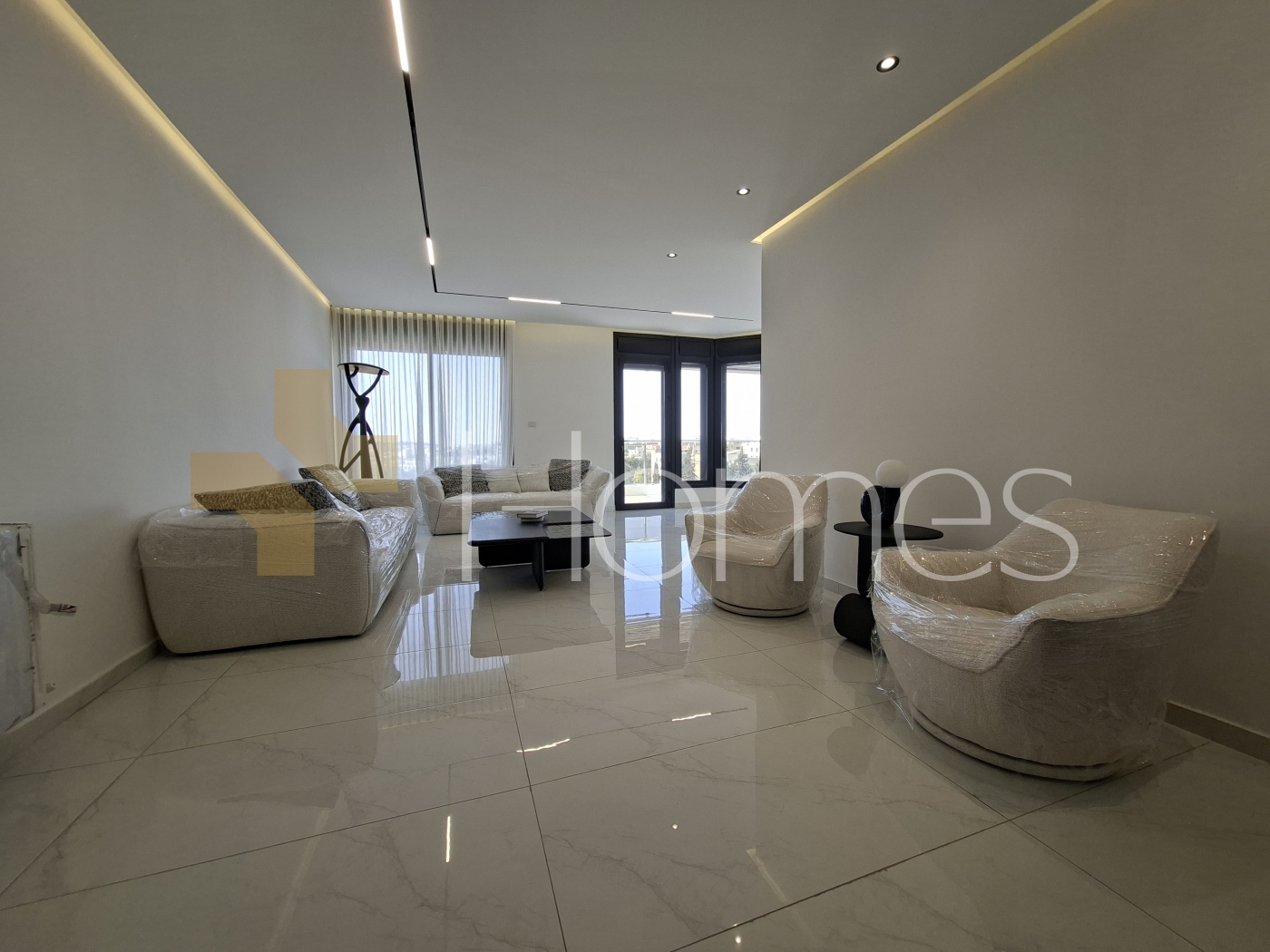 Porcelain floors - Air conditioning units - heating on gas - Cabinets - Gypsum decorations - fitted kitchen - wall hung bathrooms - Electric window shatters - Shower box - Fireplace - Elevator - Security doors - Security cameras - Hidden lighting - Double glass - Super deluxe finishes