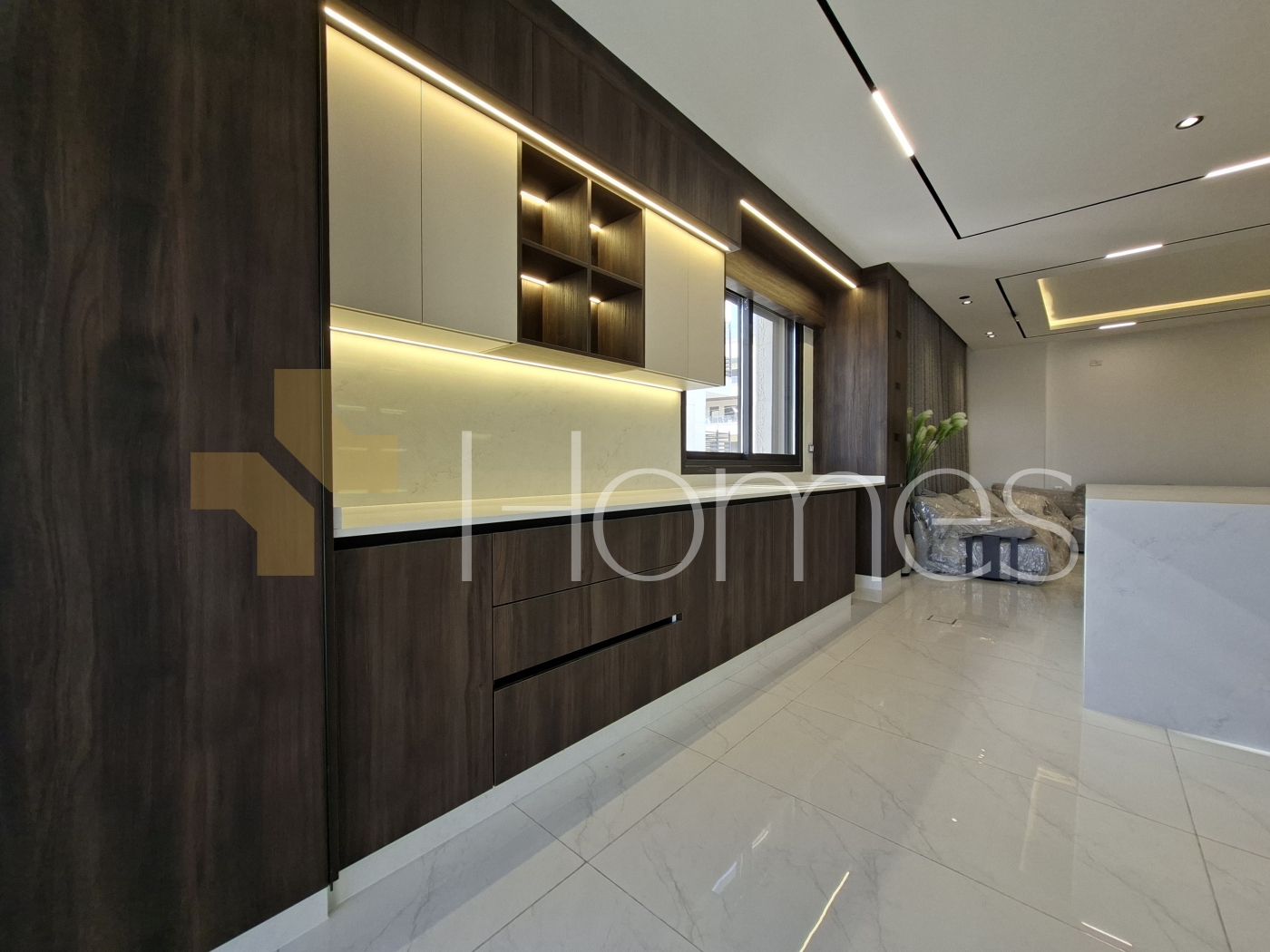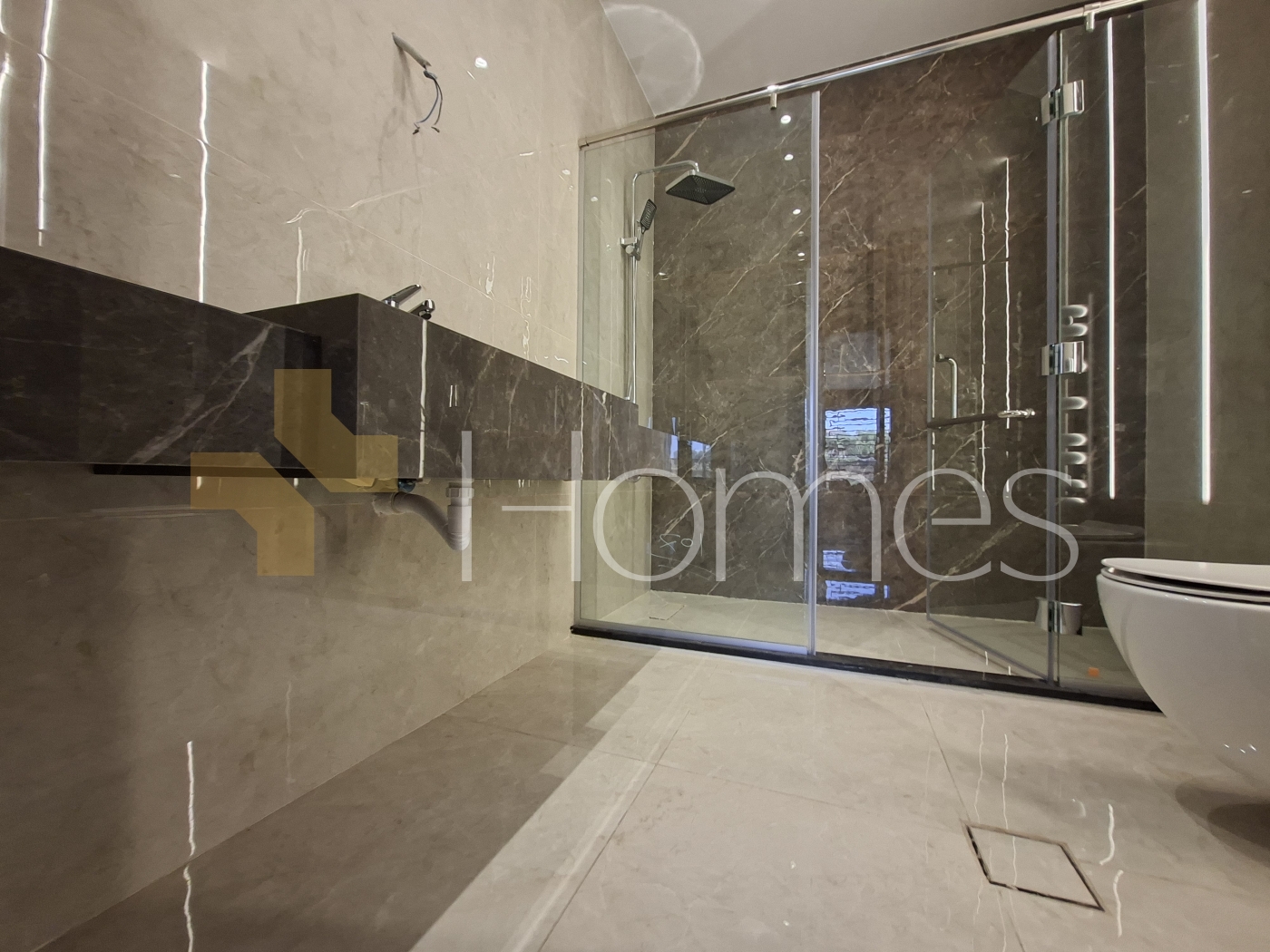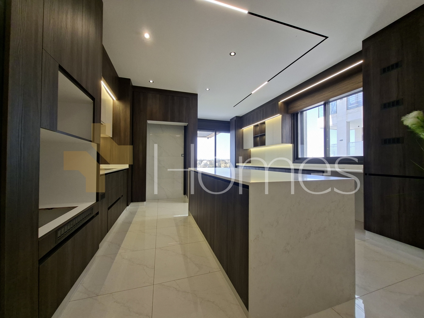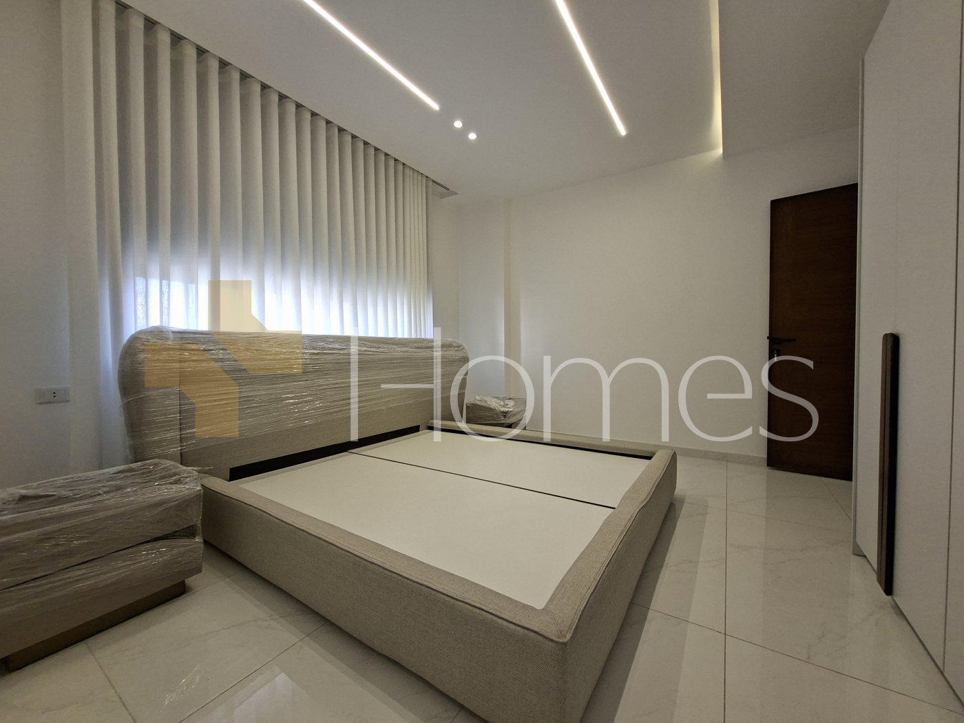 Porcelain floors - Air conditioning units - heating on gas - Cabinets - Gypsum decorations - fitted kitchen - wall hung bathrooms - Electric window shatters - Shower box - Fireplace - Elevator - Security doors - Security cameras - Hidden lighting - Double glass - Super deluxe finishes