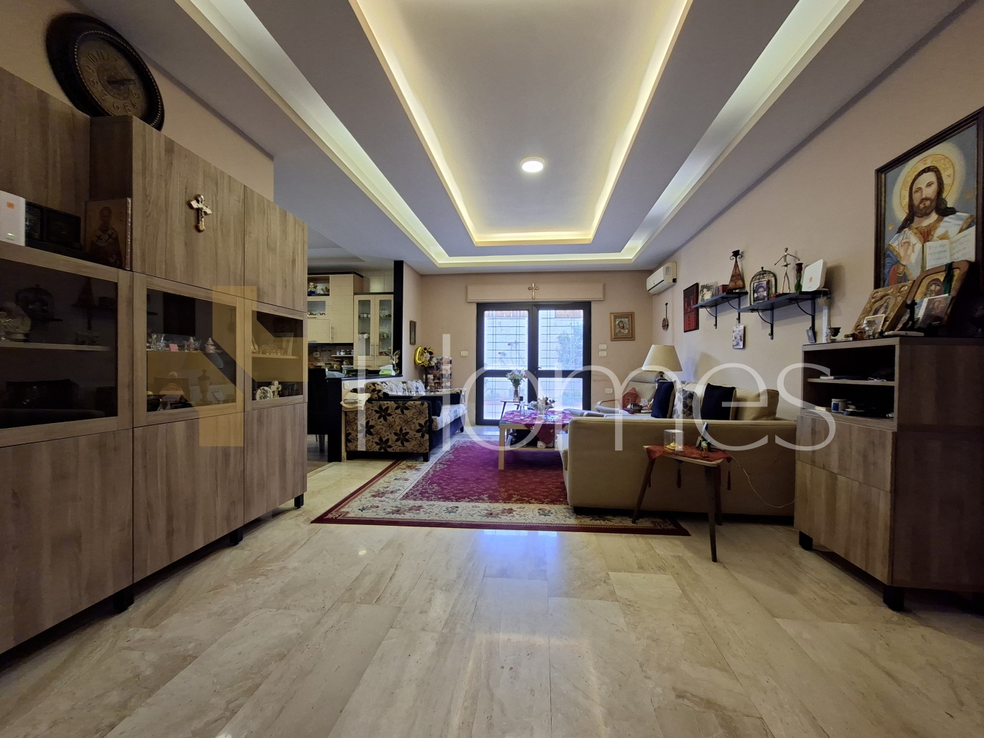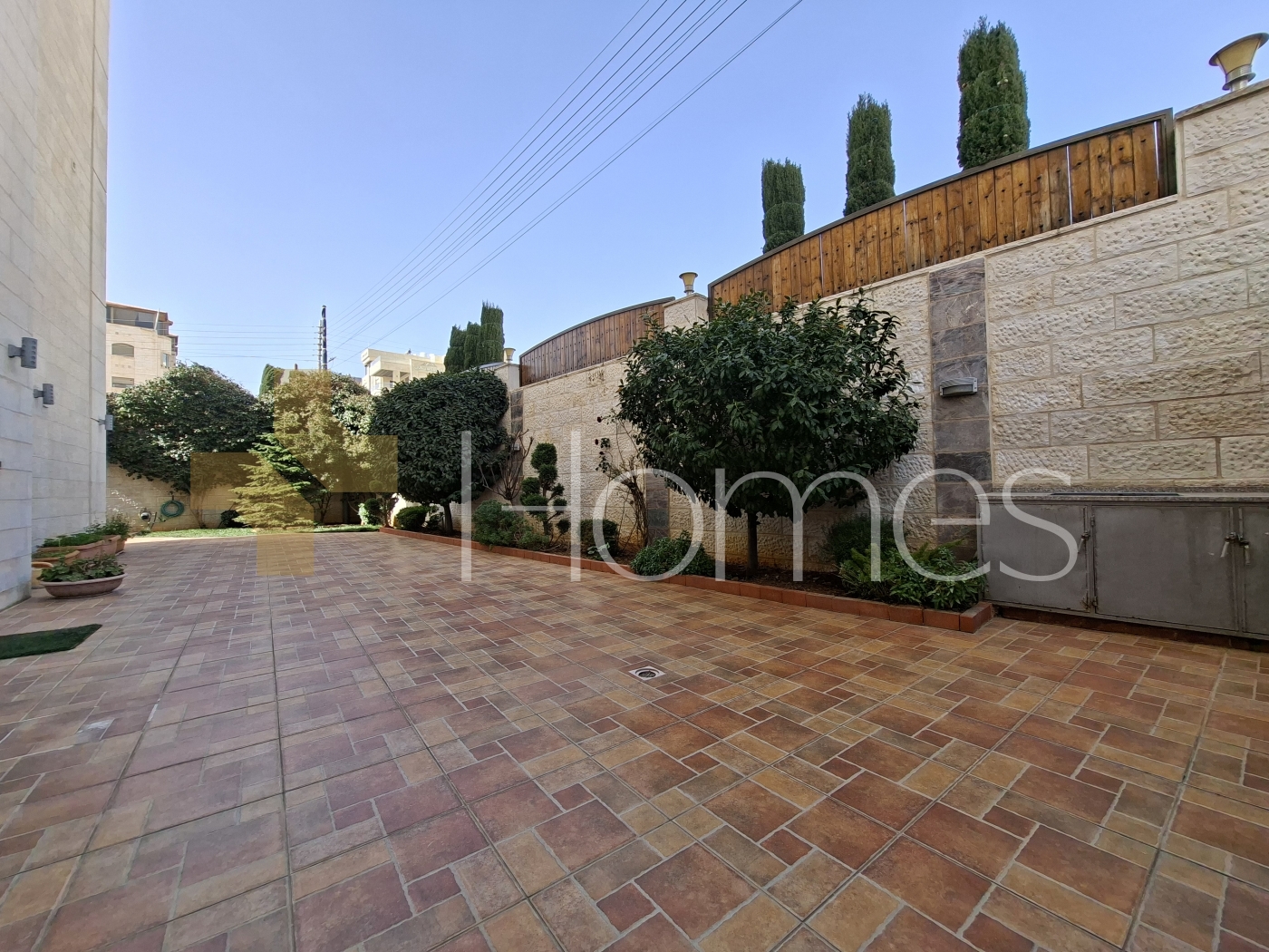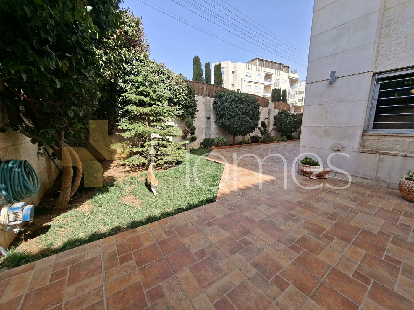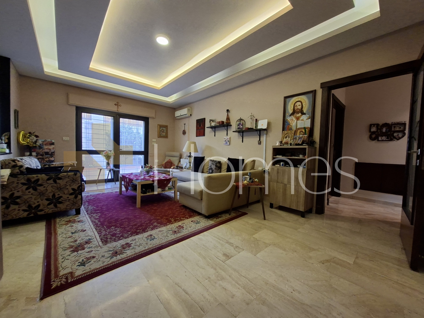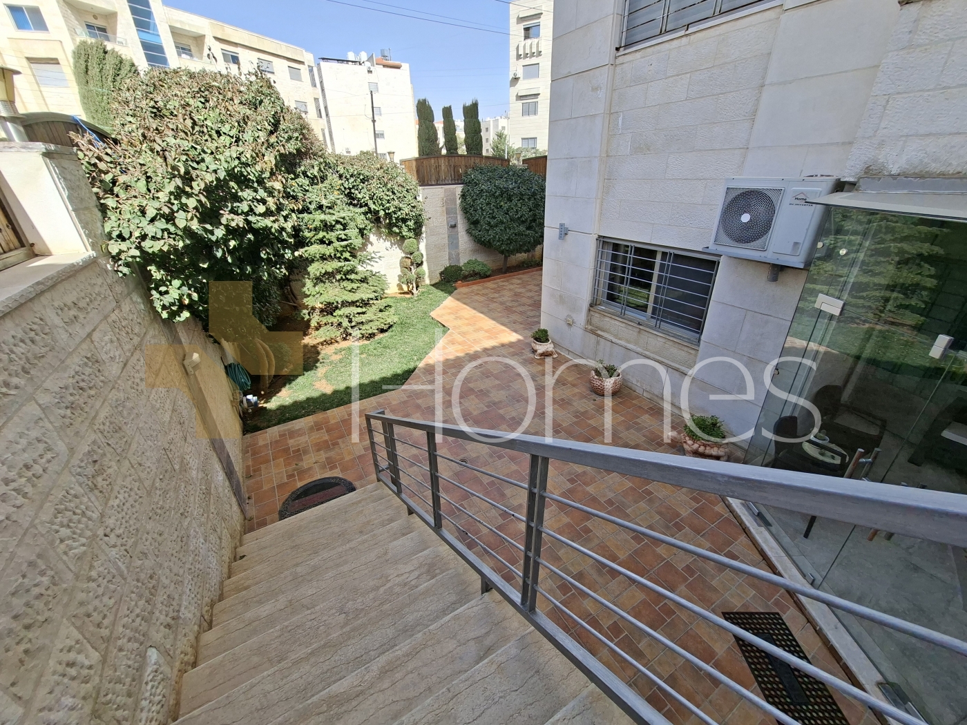 Furnished apartment with a private entrance and garden for sale in Qaryet Al-Nakheel, with a building areaof 200m in additions to an outdoor area of 150m (garden + terrace).