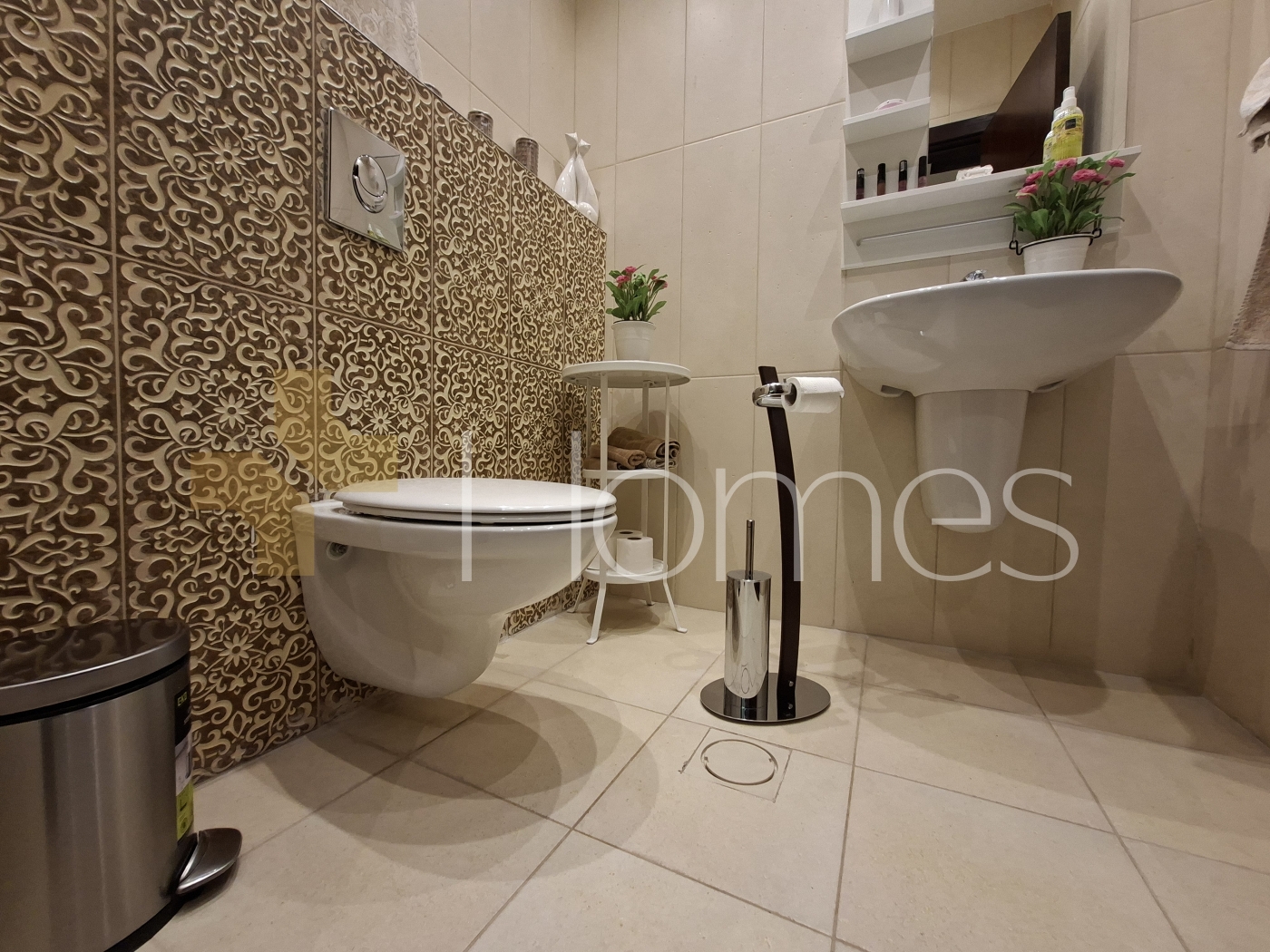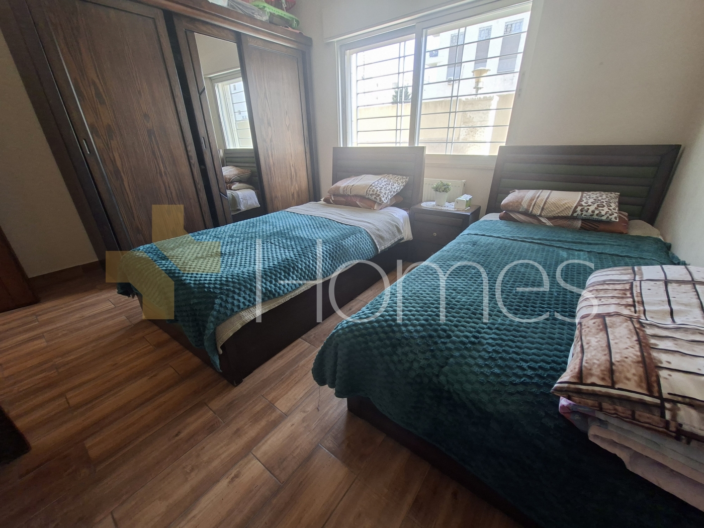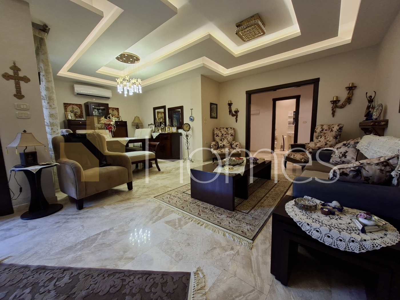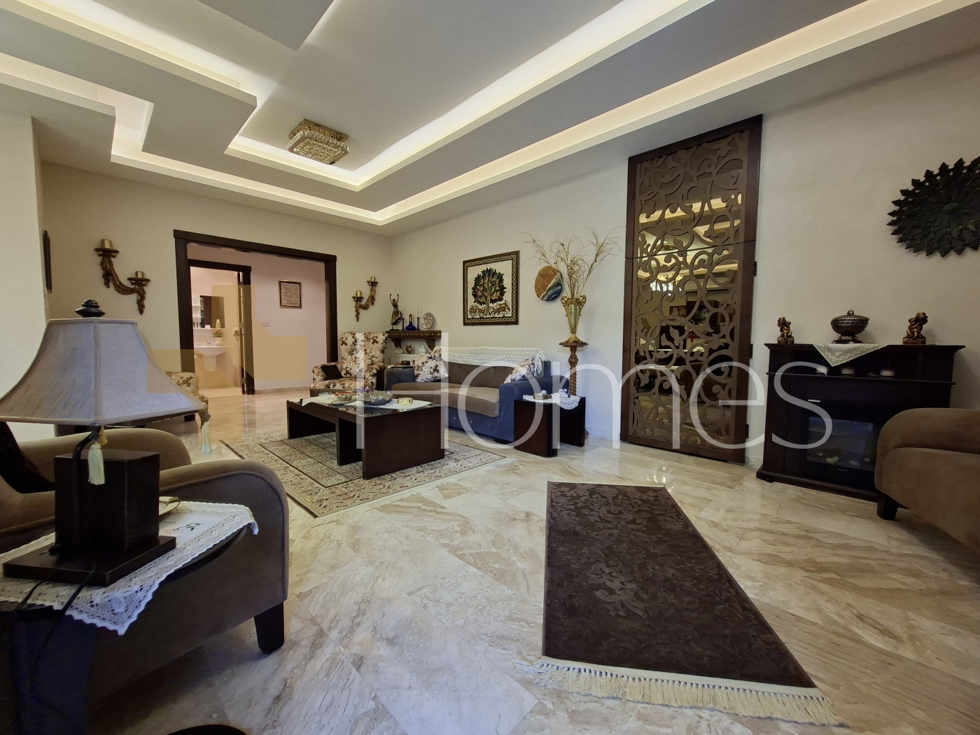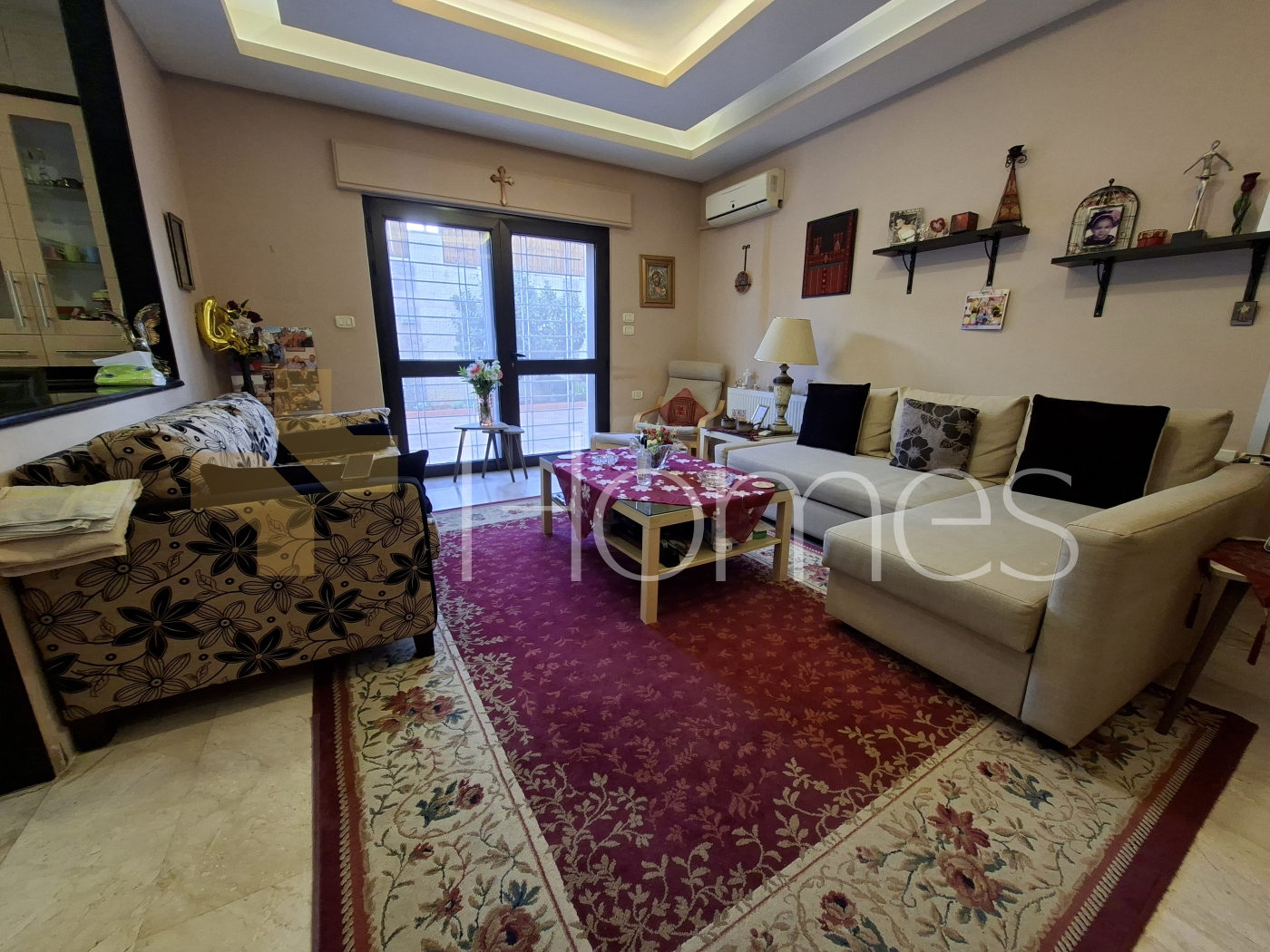 Furnished apartment with a private entrance and garden for sale in Qaryet Al-Nakheel, with a building areaof 200m in additions to an outdoor area of 150m (garden + terrace).