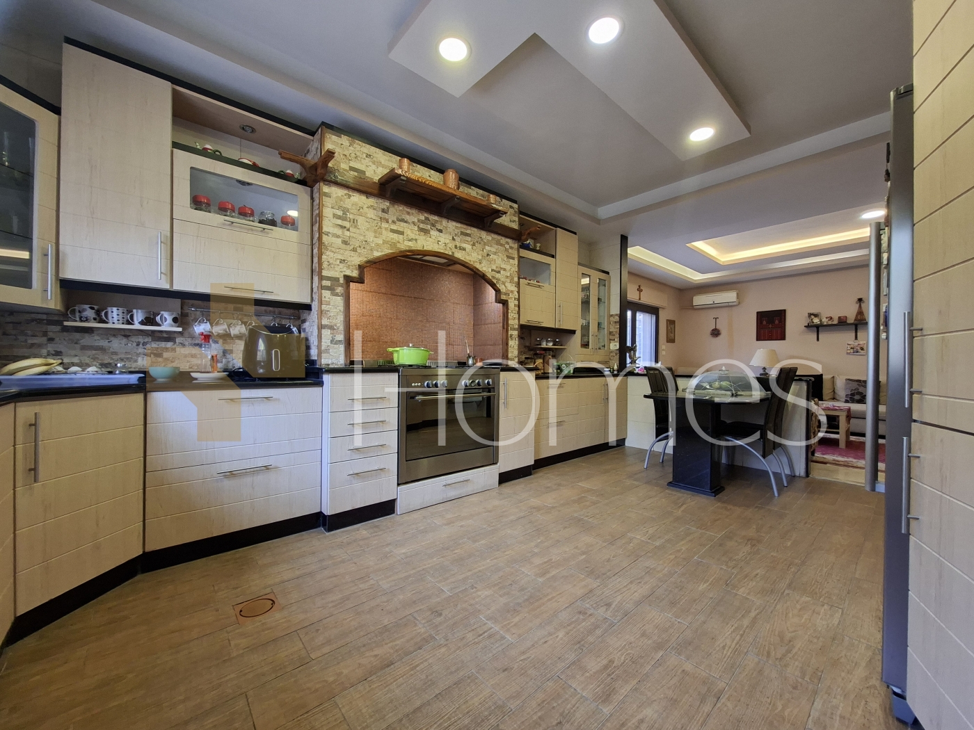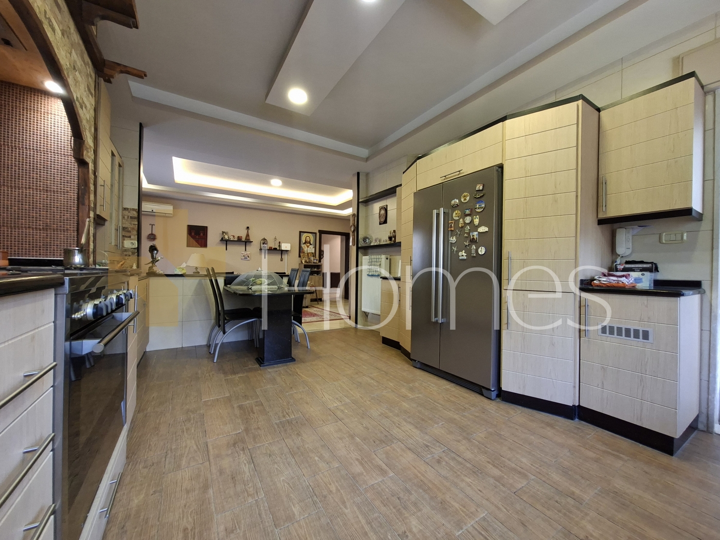 Porcelain + marble flooring - fitted kitchen - Units air conditioning - central heating - built-in wardrobes - gypsum + wood and stone decorations - wall-hung bathroom - electric window shutters - fireplace - shower enclosure - elevator - security doors - Security cameras - double glass - hidden lighting - super deluxe finishing