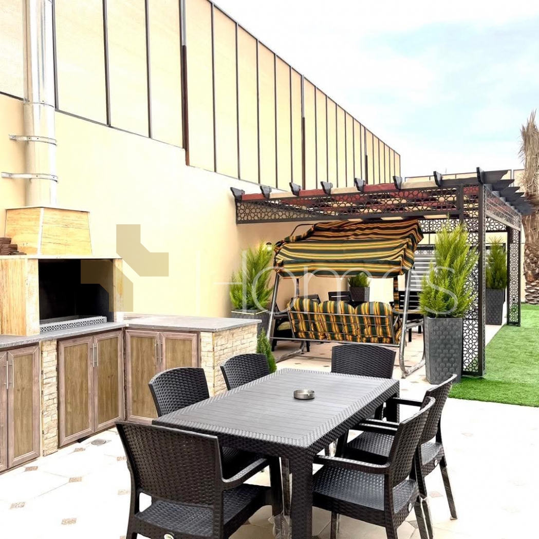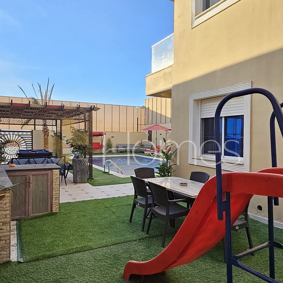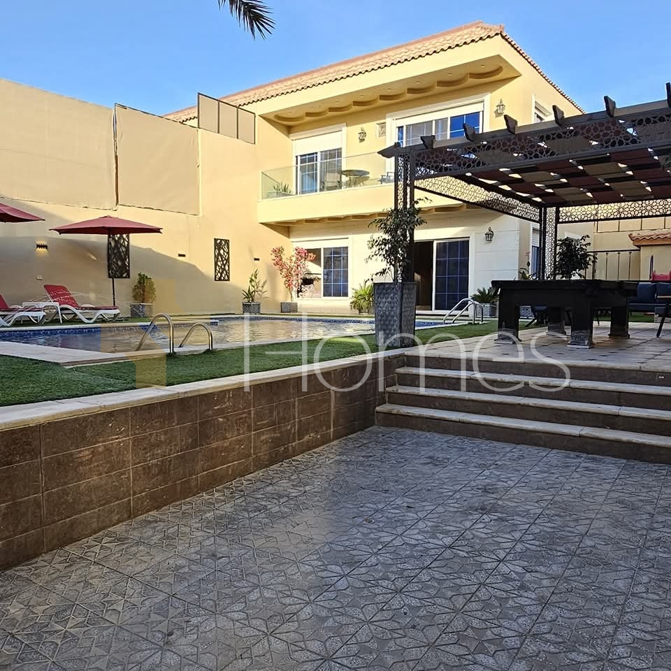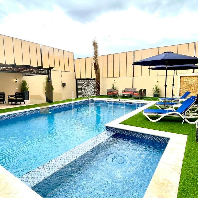 Furnished chalet with a swimming pool for sale in Al-Ghor, with a land area of 310m and a building area of 140m.