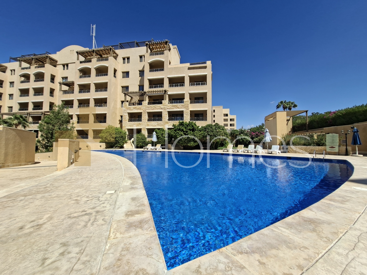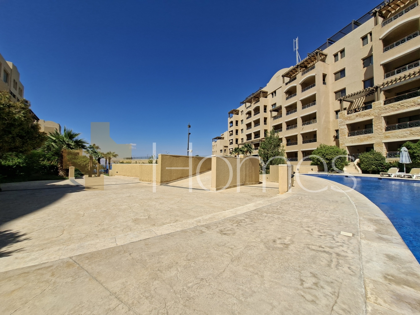 Furnished second floorhotel apartment with a shared pool, luxurious and with high views in Dead Sea, with a building area of 160m