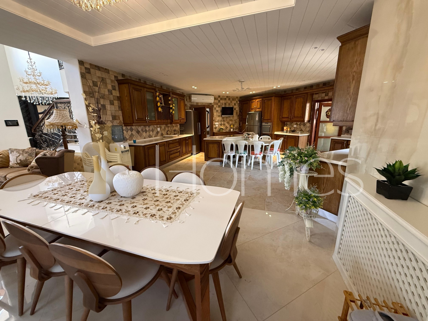 5 master bedrooms - 6 bathrooms - 2 living rooms - 2 salon - 3 kitchens - storage - maid's room + laundry room - 2 entrances - 3 terraces - garage (can accumulated for 3 cars)