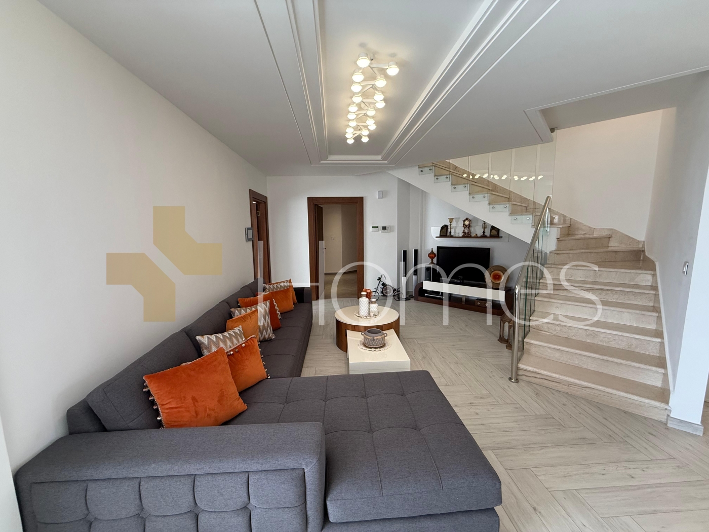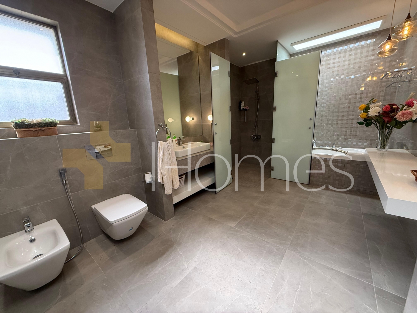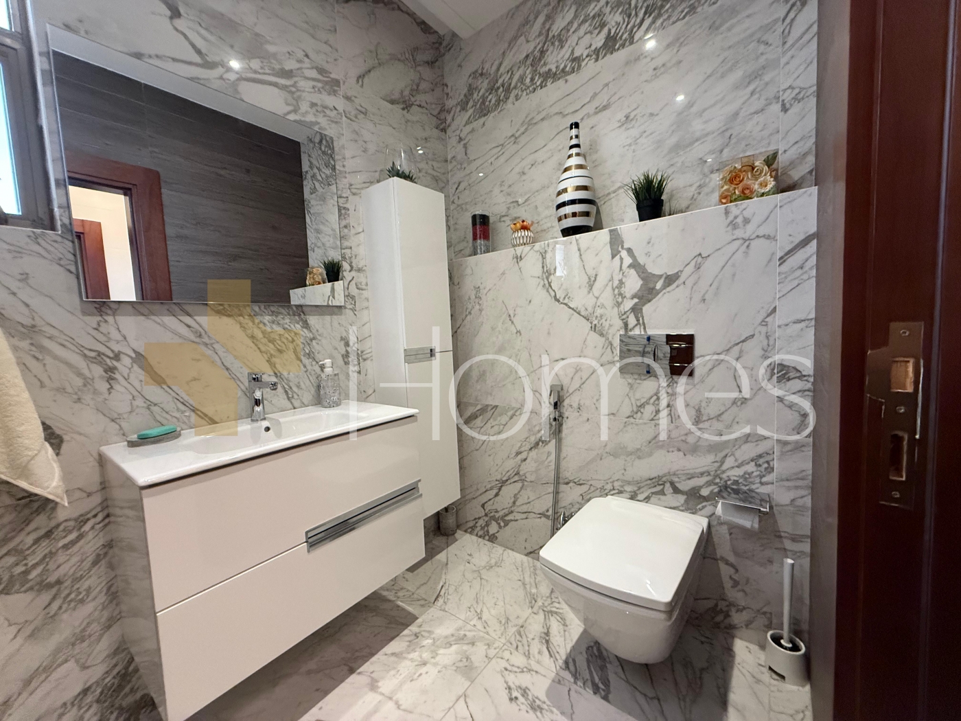 Porcelain + ceramic + marble floors - Units air conditioning - heating - gypsum + stone + wood decorations - wall cabinets - wall-hung bathrooms - electric window shutters - shower box - jacuzzi - fireplace - water well - security doors - Security cameras - hidden lighting - double glass -Super Deluxe Finishes - Located in a villa area