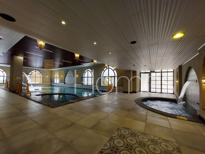 Shared swimming pool - outdoor spaces with a wide fountain - cinema halls - gym - wedding hall - lobby - security services - marble + ceramic floors - central air conditioning - underfloor heating on gas - double glass - surveillance cameras - safety doors - gas heating Under tiles - Super Deluxe finishes - Gypsum decorations - Stove - Suspended bathrooms - Electric window shutters - Shower box - Water well - Elevator - Spotlight - LED lighting - Hidden lighting - Did not live - Located in the area of villas and palaces