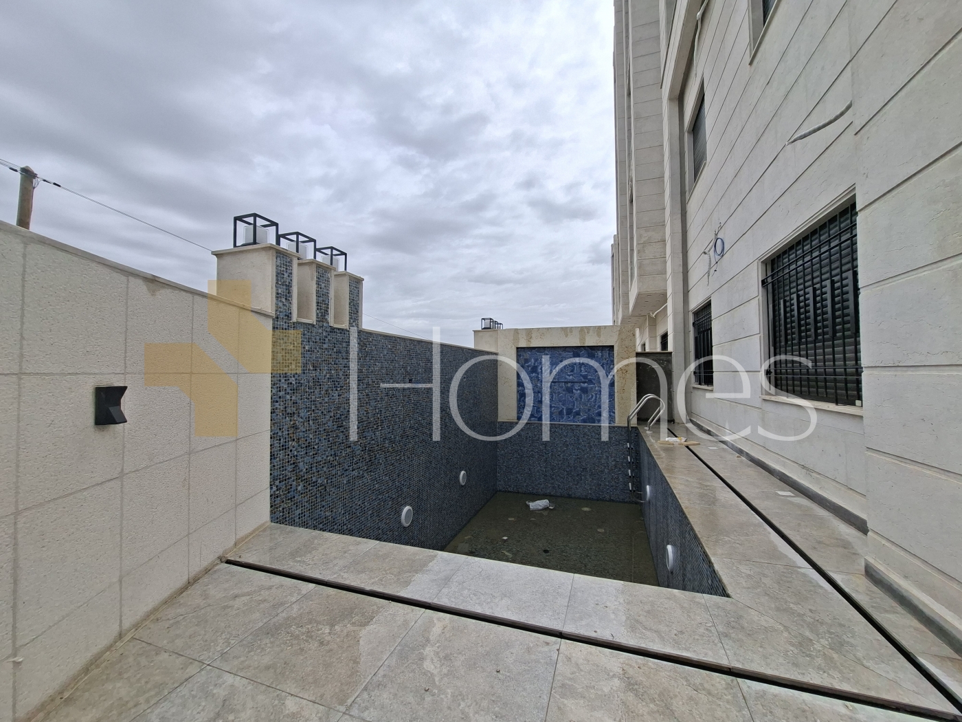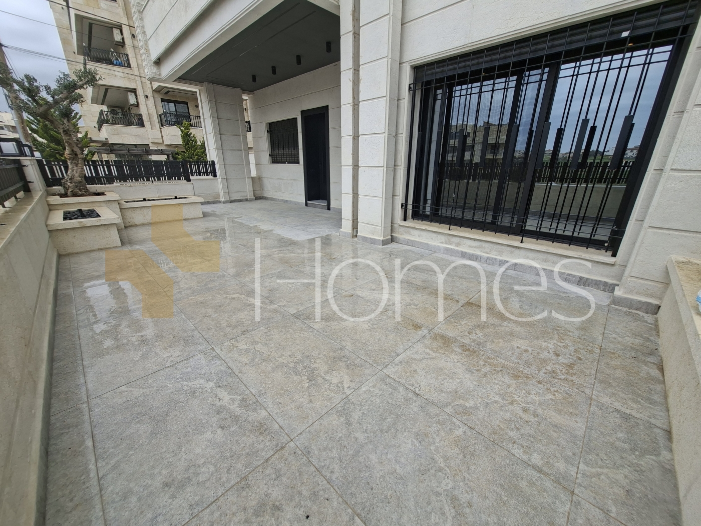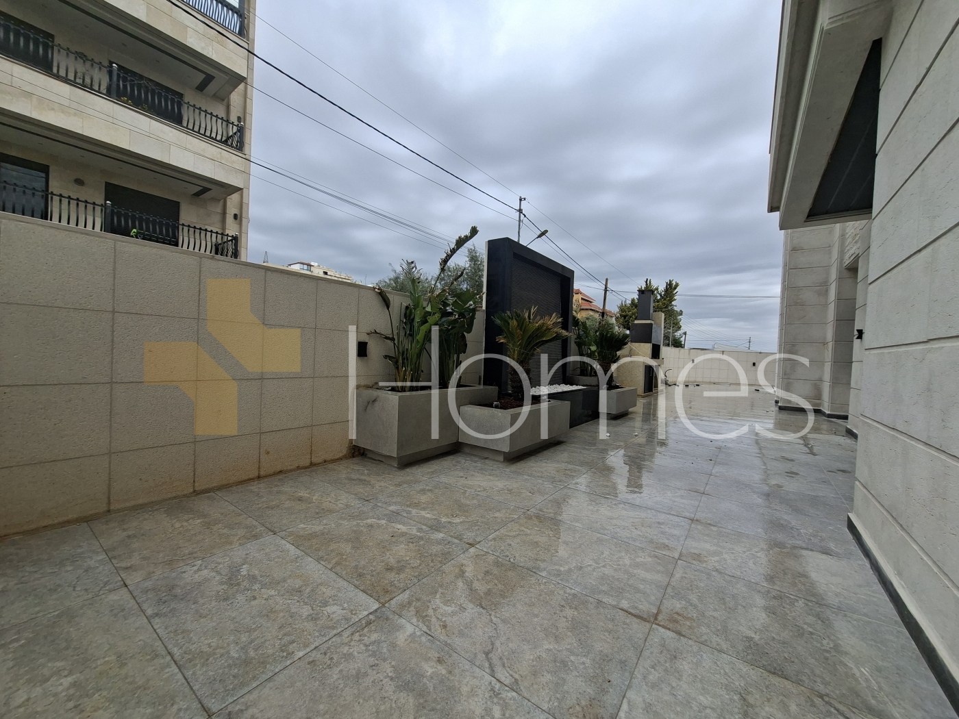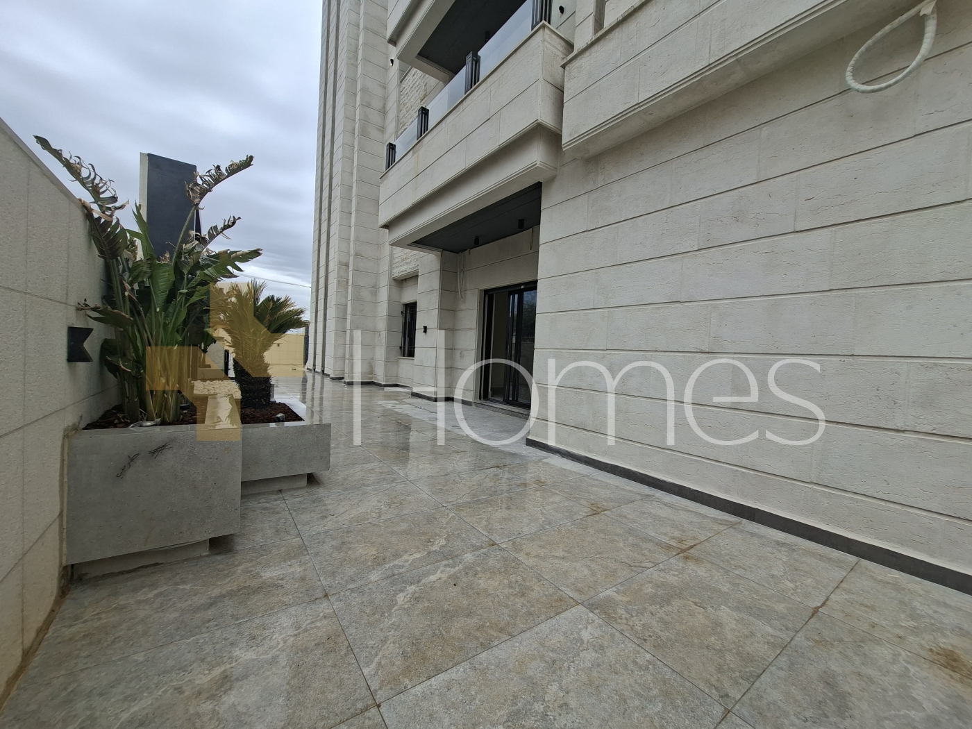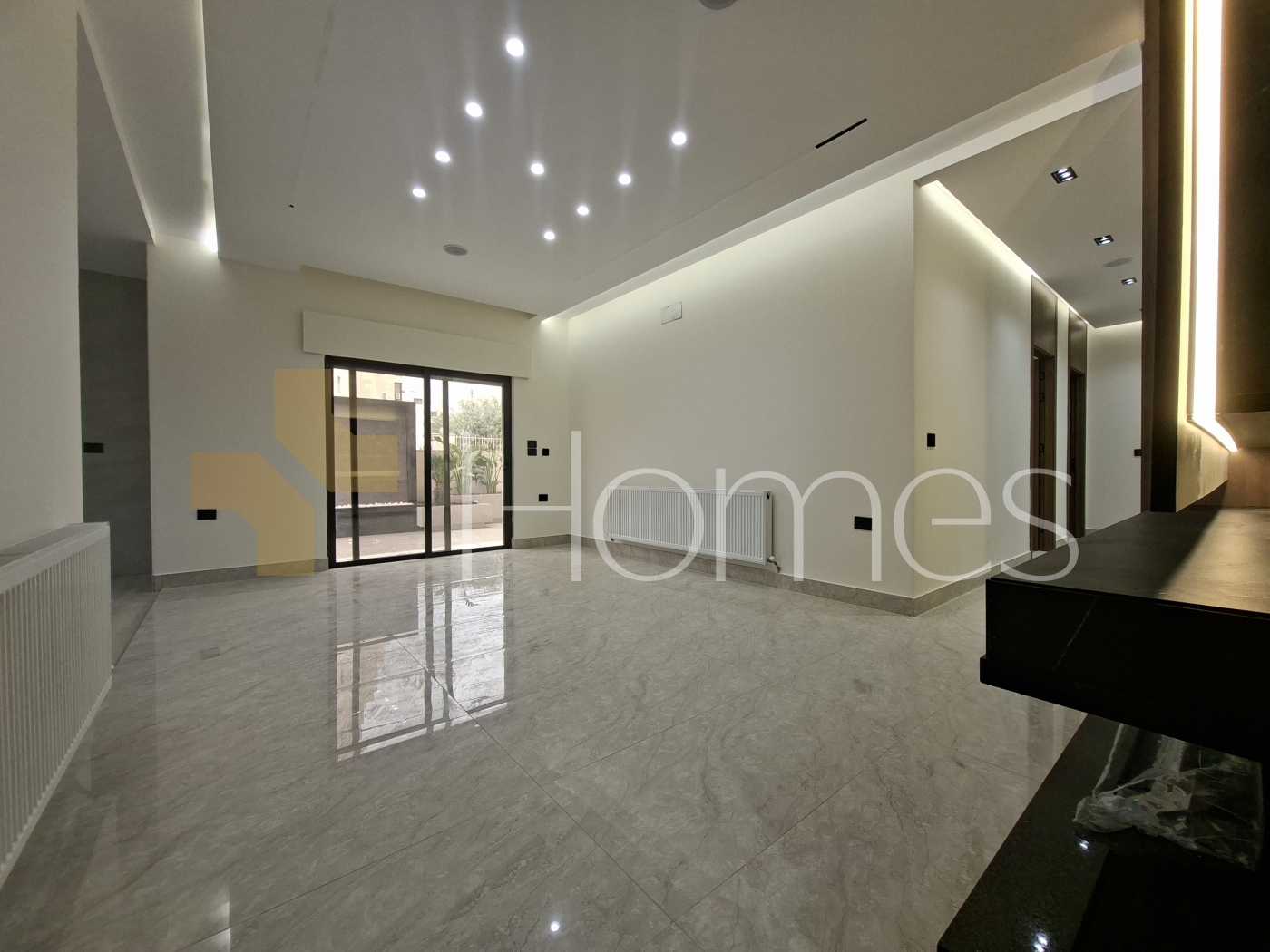 Ground floor apartment with terrace, private entrance, and garage for sale in Airport Road - Al-Huwaiti with a building area of 245m in addition to an outdoor terrace area of 70m
