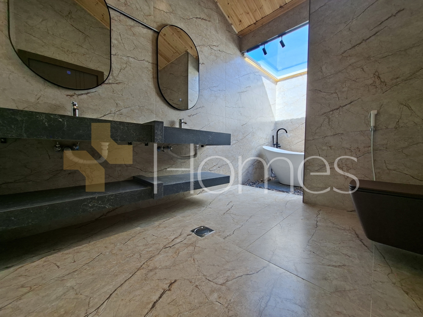 Swimming pool - Porcelain floors - Fitted kitchen -wall cabinets - Air conditioning units - Gypsum, wood, and stone decorations - wall hung bathrooms - Electric window shatters - Jacuzzi - Shower box - Fireplace - Water well - Security doors - Security cameras - Double glass - Spotlights - LED lighting - Hidden lighting - Super deluxe finishes
