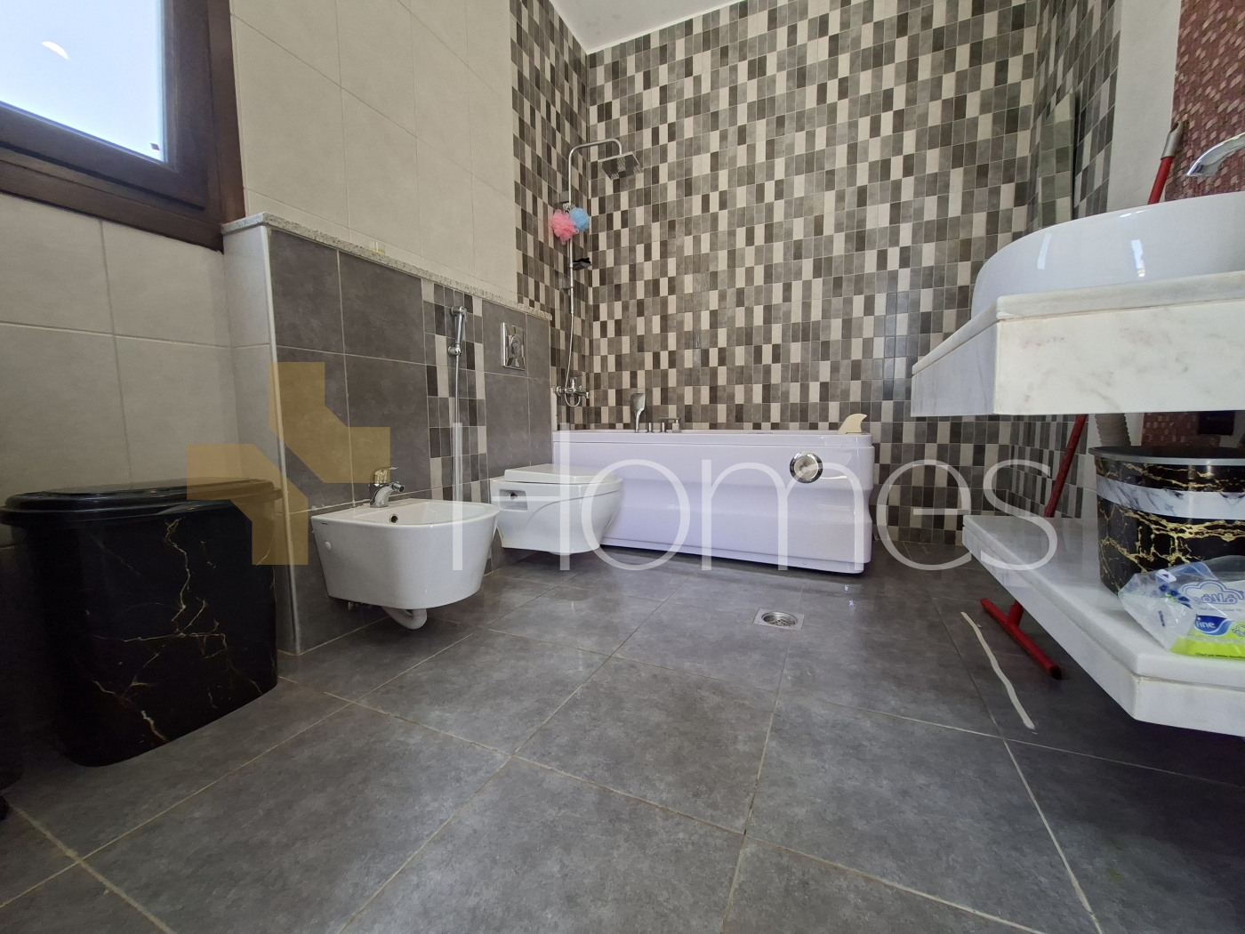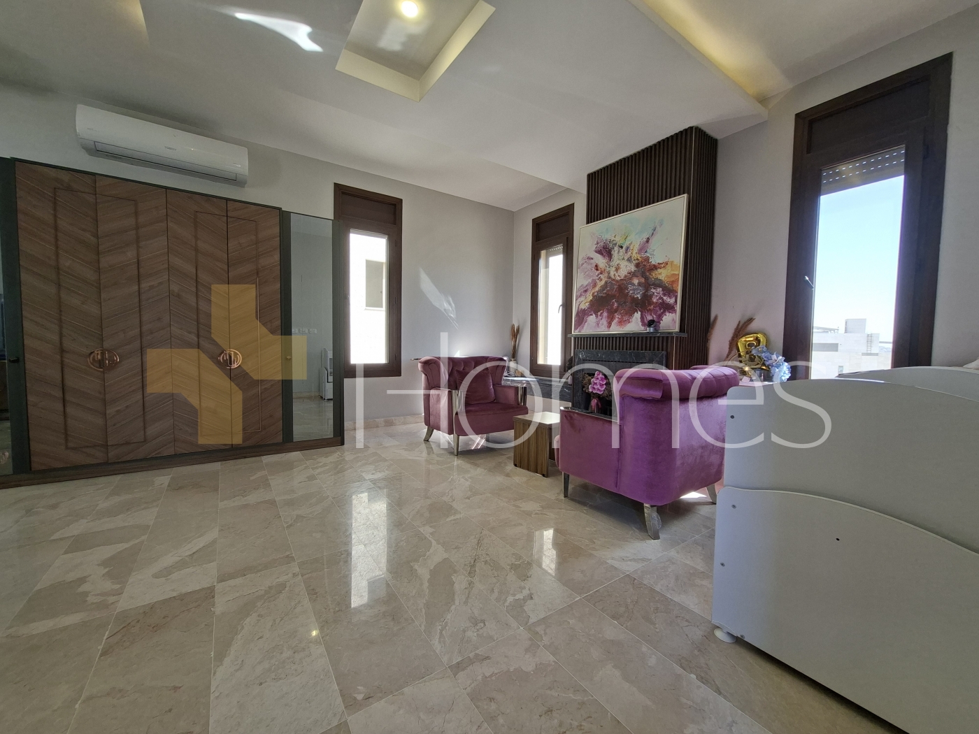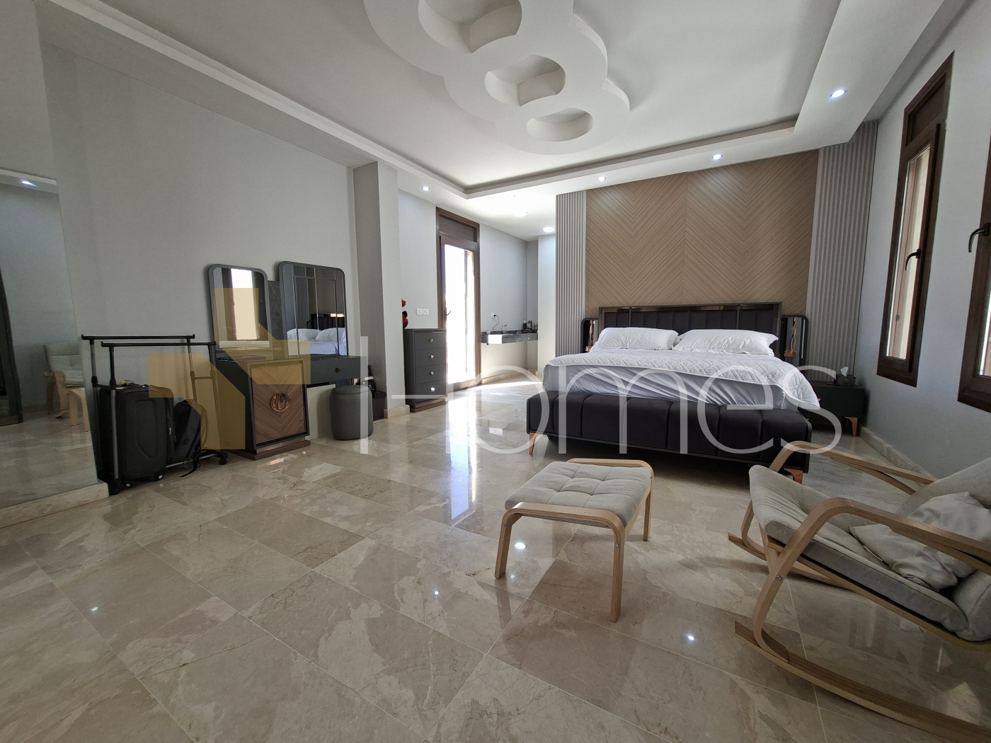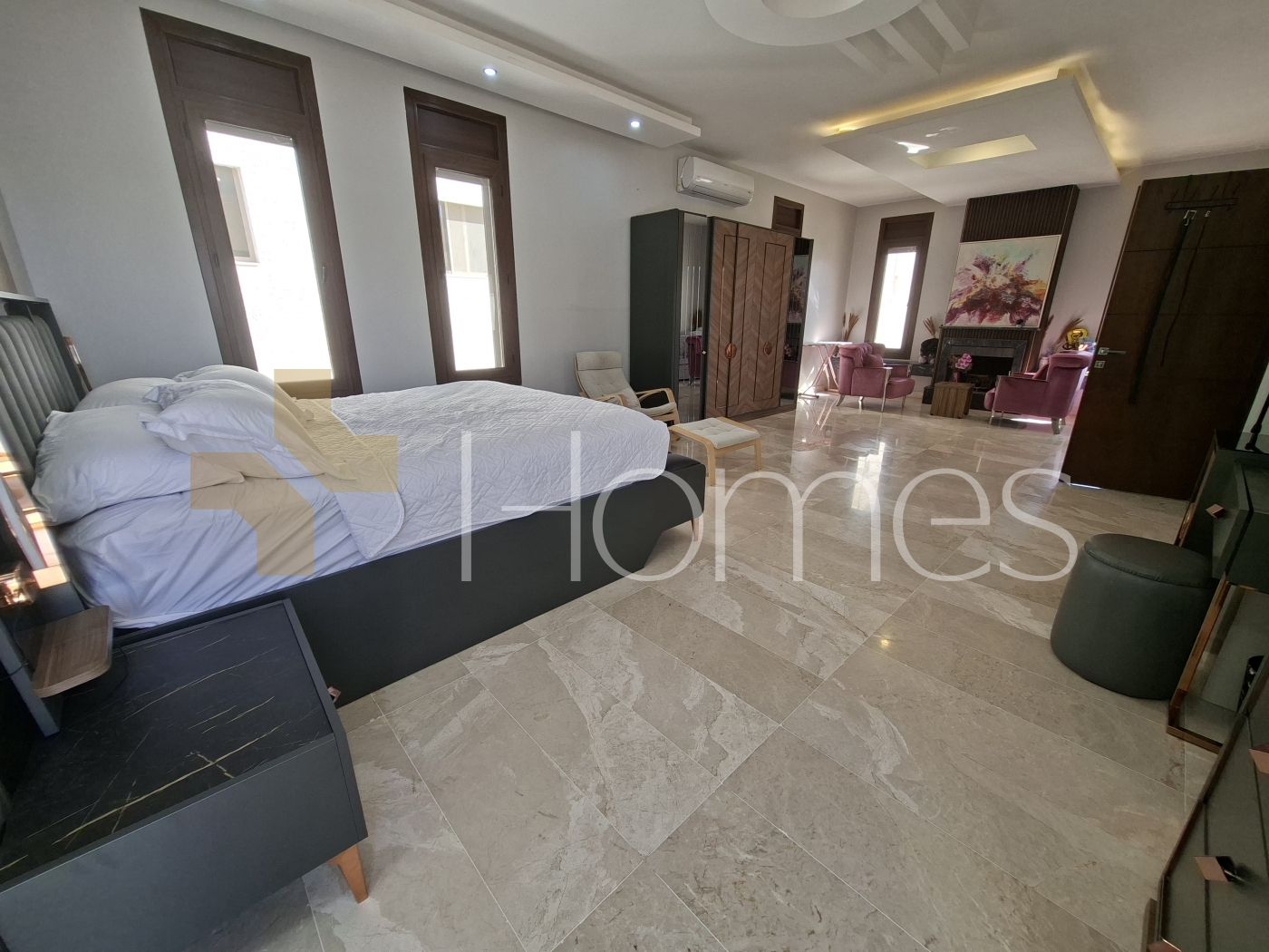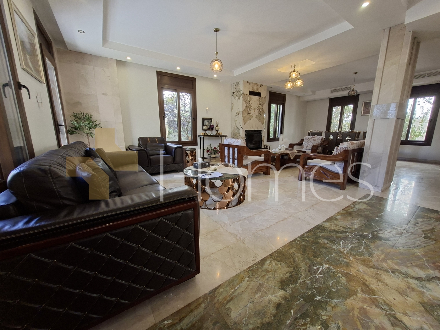 Marble floors - Air conditioning units + established - Heating - Super deluxe finishes - Fitted kitchen - Gypsum + wood decorations - Shower box - Jacuzzi - Fireplace - Water well