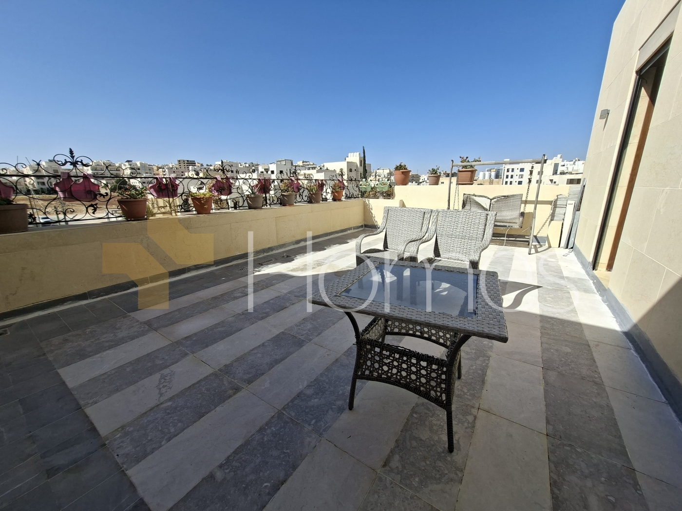 4 bedrooms (2 master) - 5 bathrooms - Salon - 2 living rooms - 2 kitchens - Storage - Maid's room + laundry room - 2 entrances - 2 terraces - Balcony - Garage (can accommodate d for 2 cars)