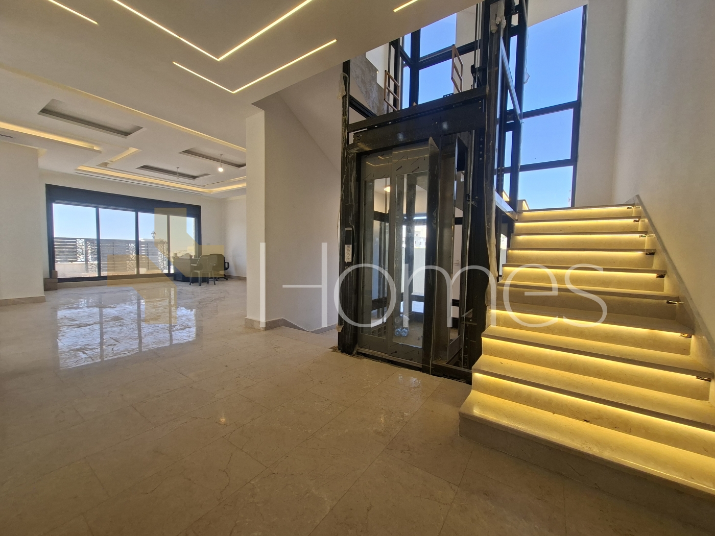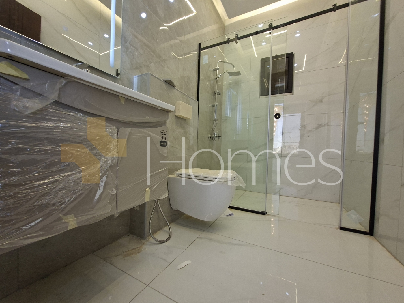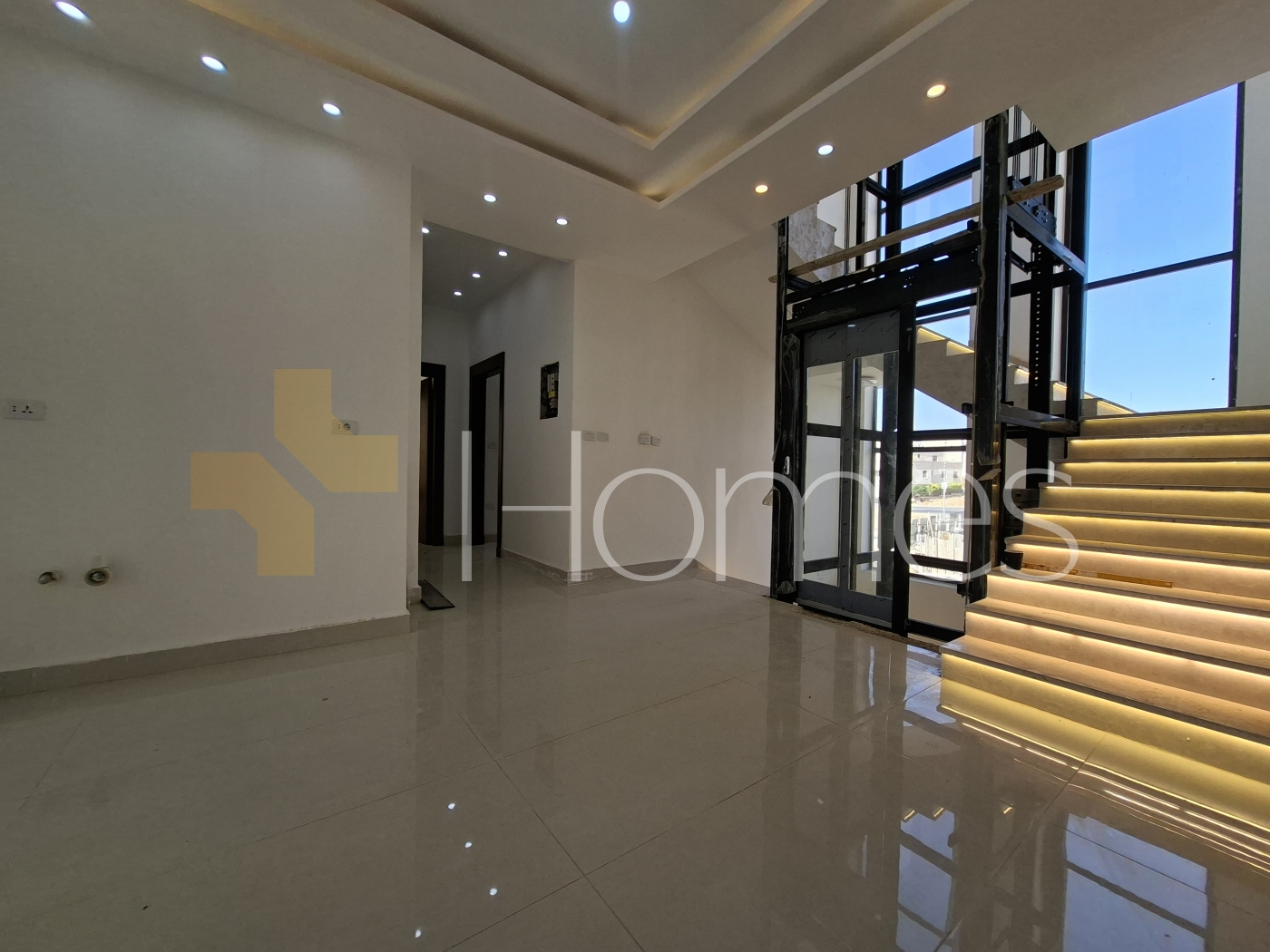 Porcelain floors - Air conditioning units - Gas heating - Gypsum decorations - wall hung bathrooms - Electric window shatters - Shower box - Water well - Elevator - Spotlight lighting - LED lighting - Hidden lighting - Super deluxe finishes - Located in a villa area