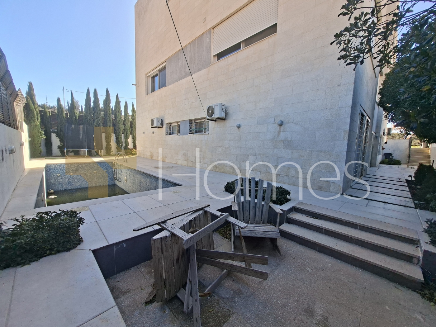 Stand-alone villa with a swimming pool for sale in Marj El-Hamam - Umm Rummaneh, with a built-up area of 990m and a land area of 608m.