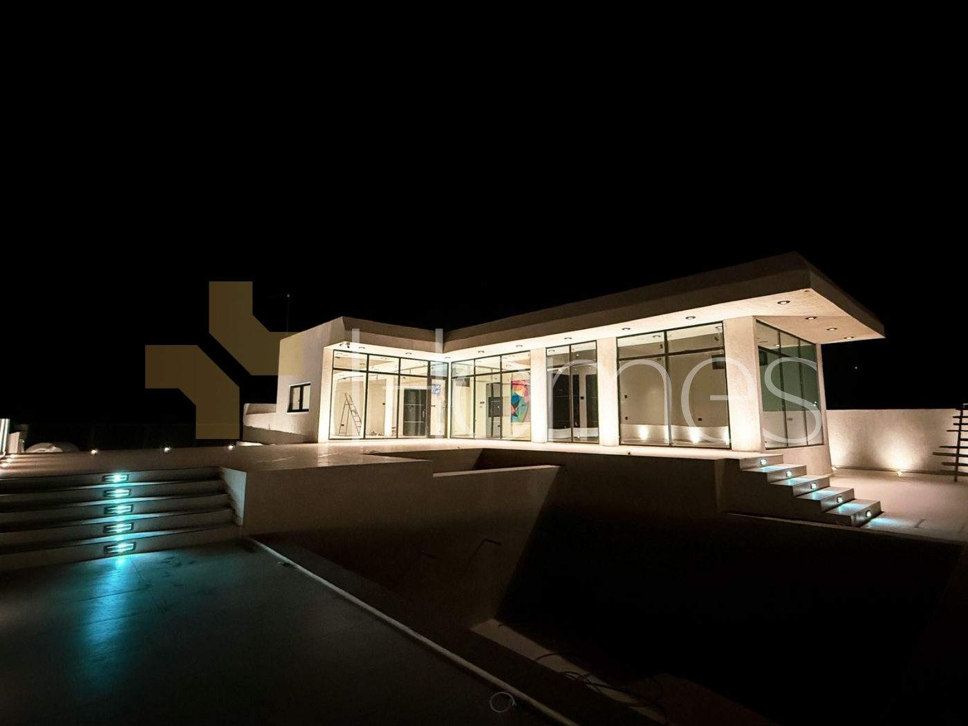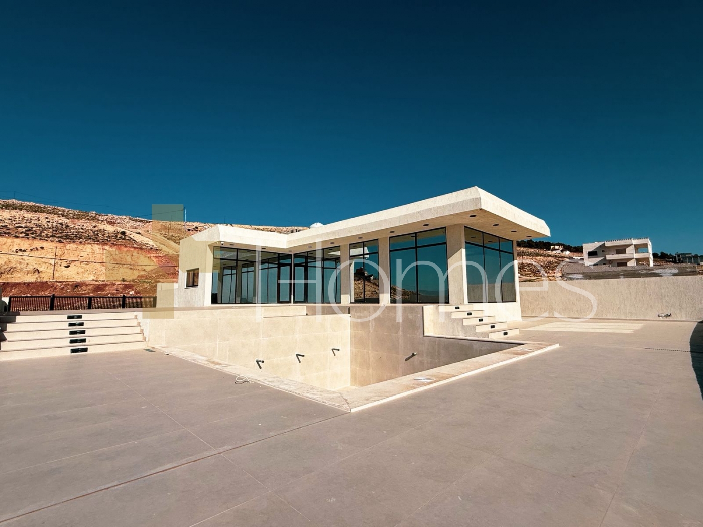 Swimming pool - Porcelain floors - separate air conditioning units - Fitted kitchen - cabinets - Gypsum board decorations - Wall-hung bathrooms - Electric window shatters - Shower boxes - Fireplace - Water well - Security doors - Securitycameras - hidden lighting - Double glass