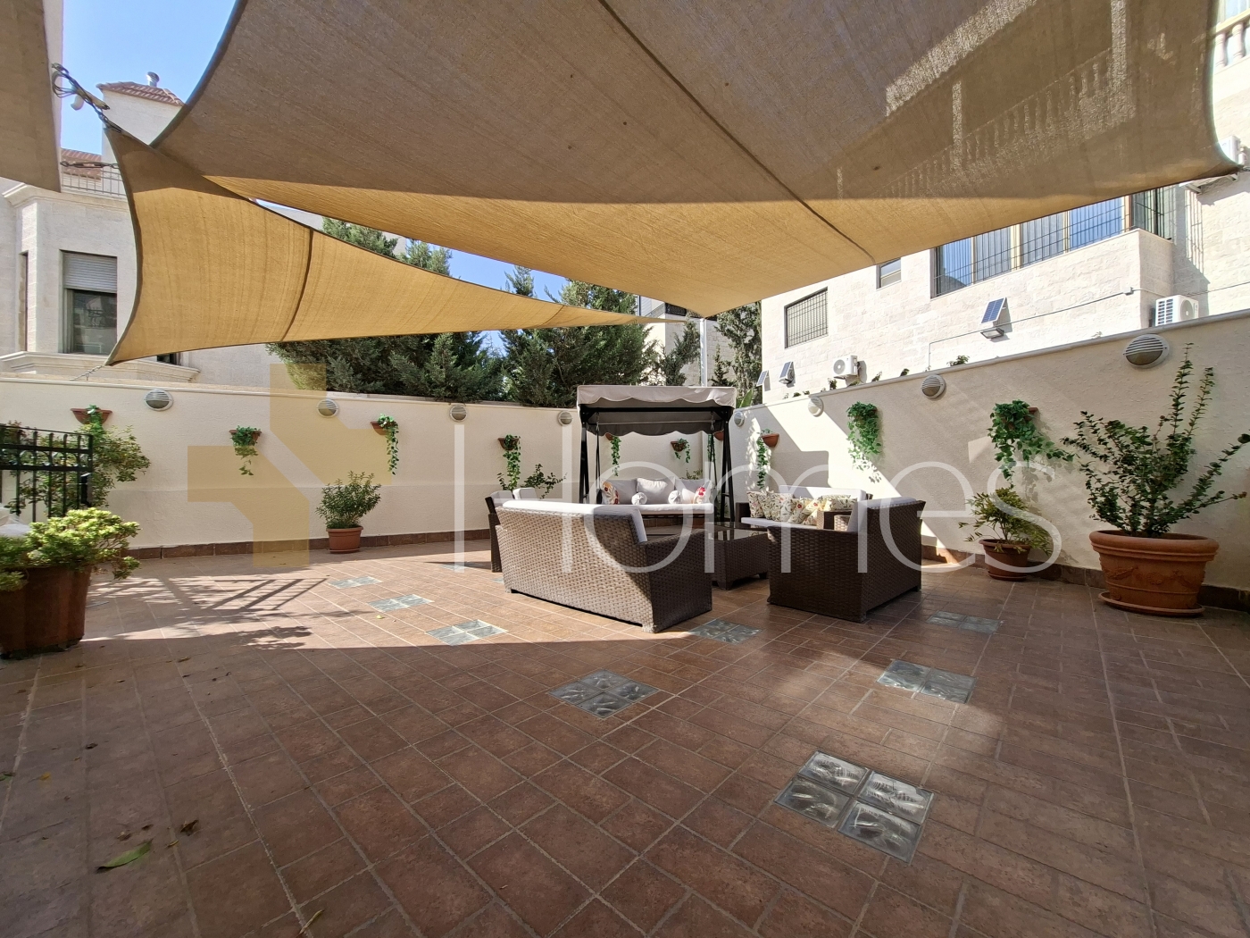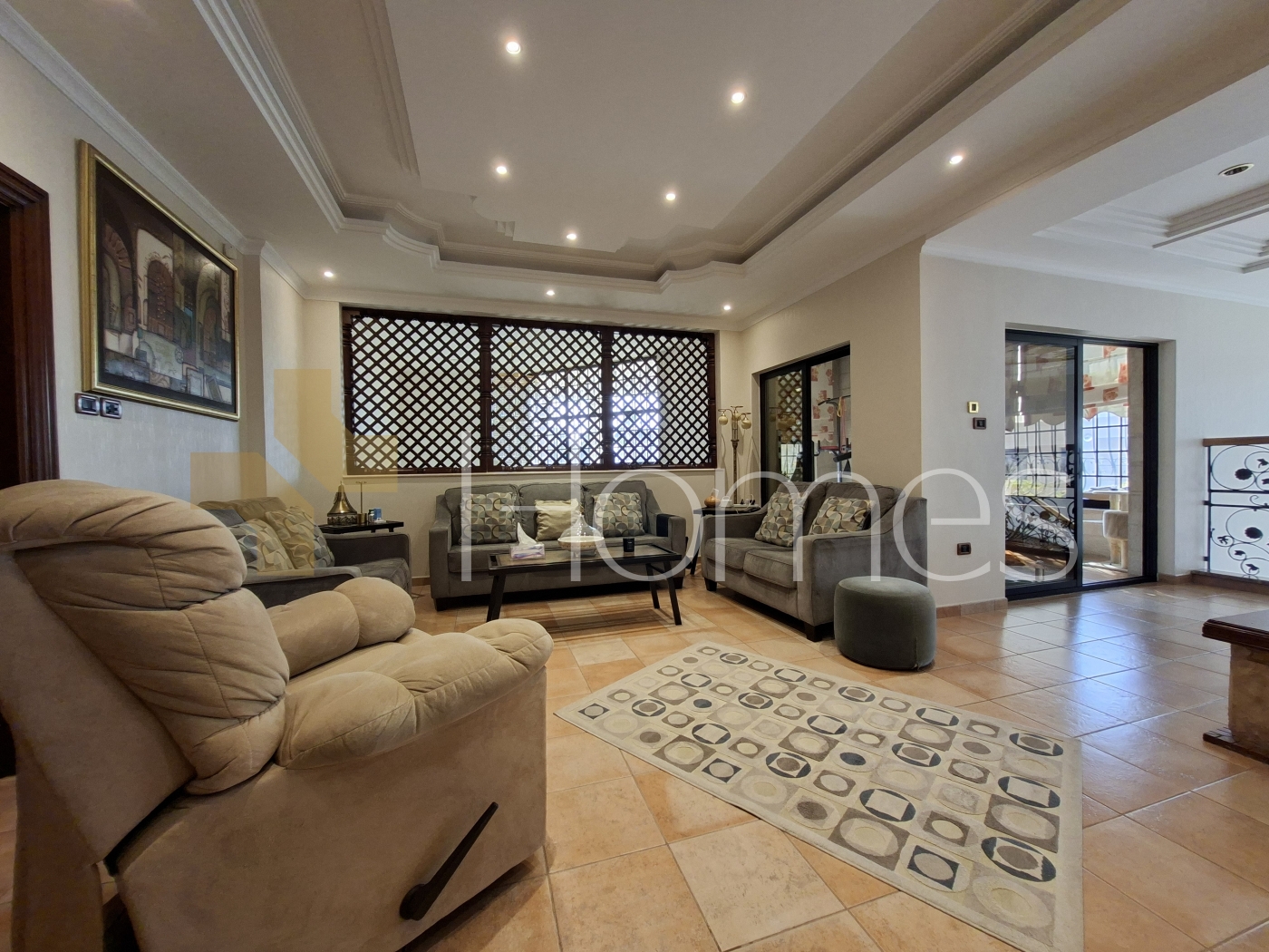 7 bedrooms (5 master ) - 8 bathrooms - 3 living rooms - 3 salons - 3 kitchens - 3 terraces - 3 balconies - storage room - maid's room and laundry room - 2 entrances - garageaccommodatesfor 2 cars