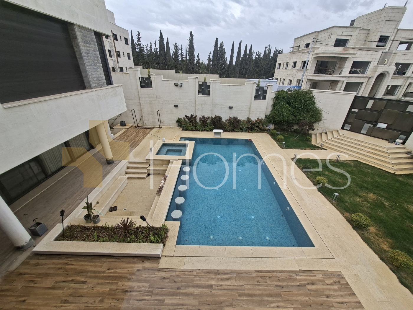 Swimming pool - Jacuzzi - Elevator - Porcelain floors - Central air conditioning - Underfloor heating on gas - Fitted kitchen - cabinets - Gypsum + stone and wood decorations - Wall-hung bathrooms - Electric window shatters - Shower boxes - Fireplace - Water well - Security doors - Securitycameras -Spotlight lighting - LED lighting - Hidden lighting - Double glass - Located in a classy and quiet neighborhood